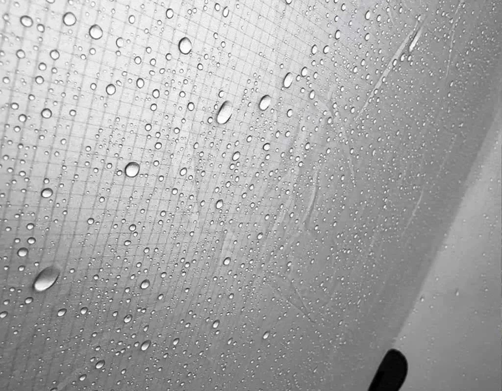 Tropik namiotu jest skonstruowany z materiału 20D SilPoly (gramatura 38 g/m², słup wody 2 000 mm). Poliester w przeciwieństwie do nylonu tak bardzo nie nasiąka wodą i dzięki temu namiot w deszczu tak bardzo się nie opada. To tkanina z dwustronnym silikonowym pokryciem, które zwiększa wytrzymałość włókien, zmniejsza nasiąkliwość powierzchni i poprawia odporność na promieniowanie UV. Z tego powodu szwy nie są podklejone taśmą jak w zwykłych namiotach, ponieważ na silikonowej powierzchni nie trzymają. Musisz więc przed użyciem posmarować szwy silikonowym klejem/pokryciem od zewnętrznej strony. Możesz użyć na przykład Gear Aid Seam Grip +Sil 28g.