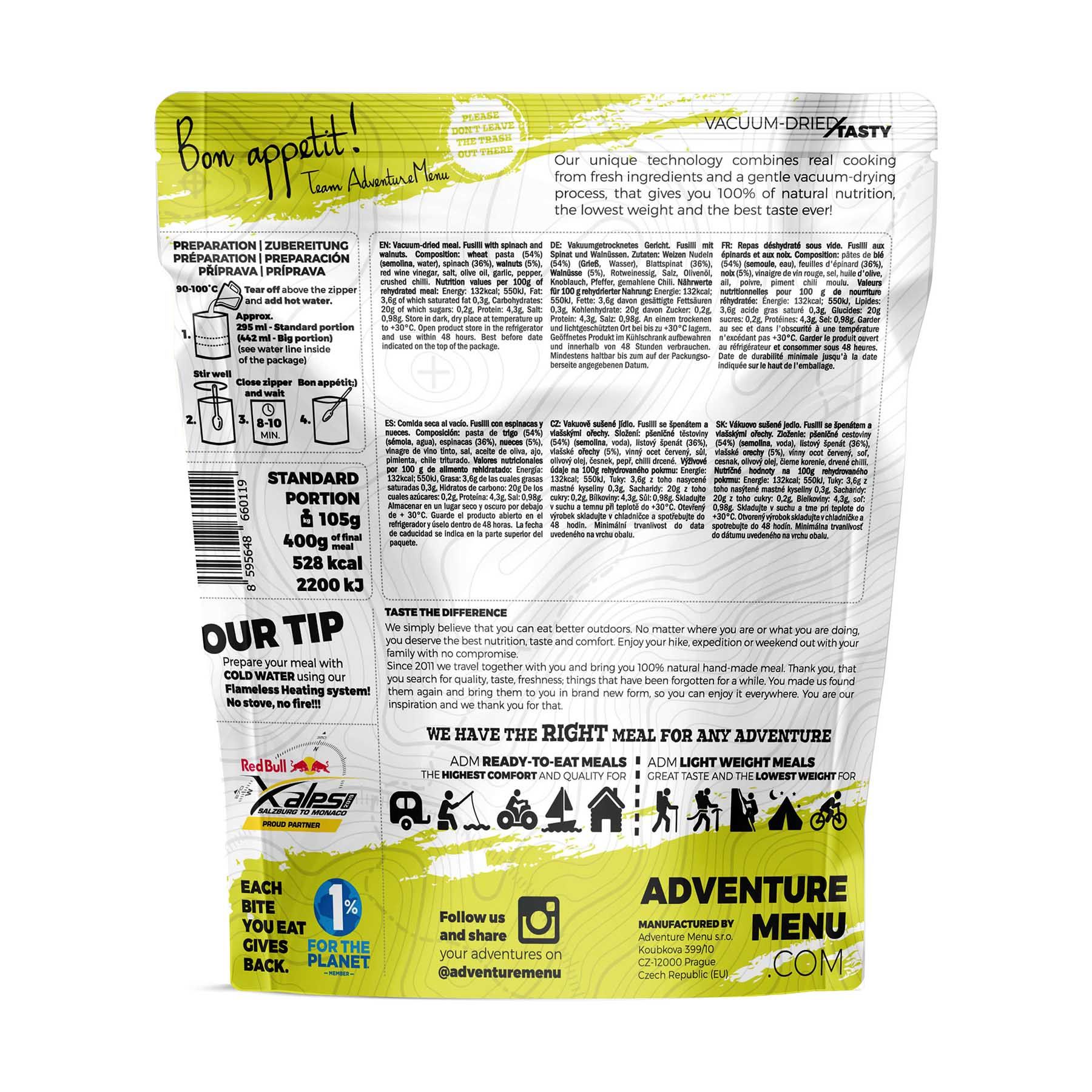 Te jedzenia są stworzone do noszenia w plecaku. Ważą prawie nic, a mimo to dadzą ci wszystko, czego twoje ciało i umysł potrzebują po ciężkim dniu. Wszystkie posiłki Adventure Menu są 100% naturalne, bez jakichkolwiek chemicznych dodatków i ręcznie gotowane w Czechach.