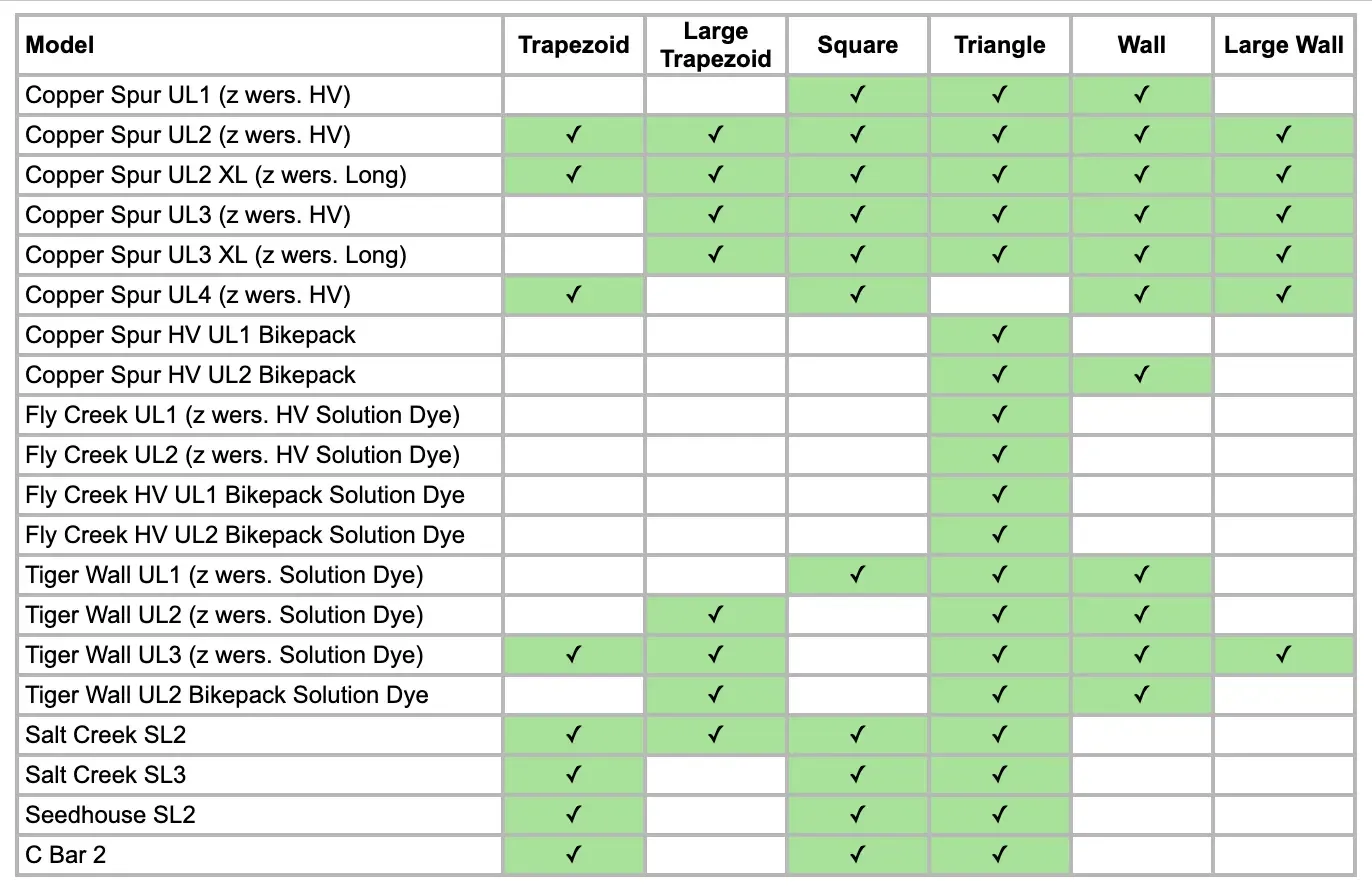 Sprawdź, proszę, kompatybilność organizerów ze swoim namiotem w tabeli.