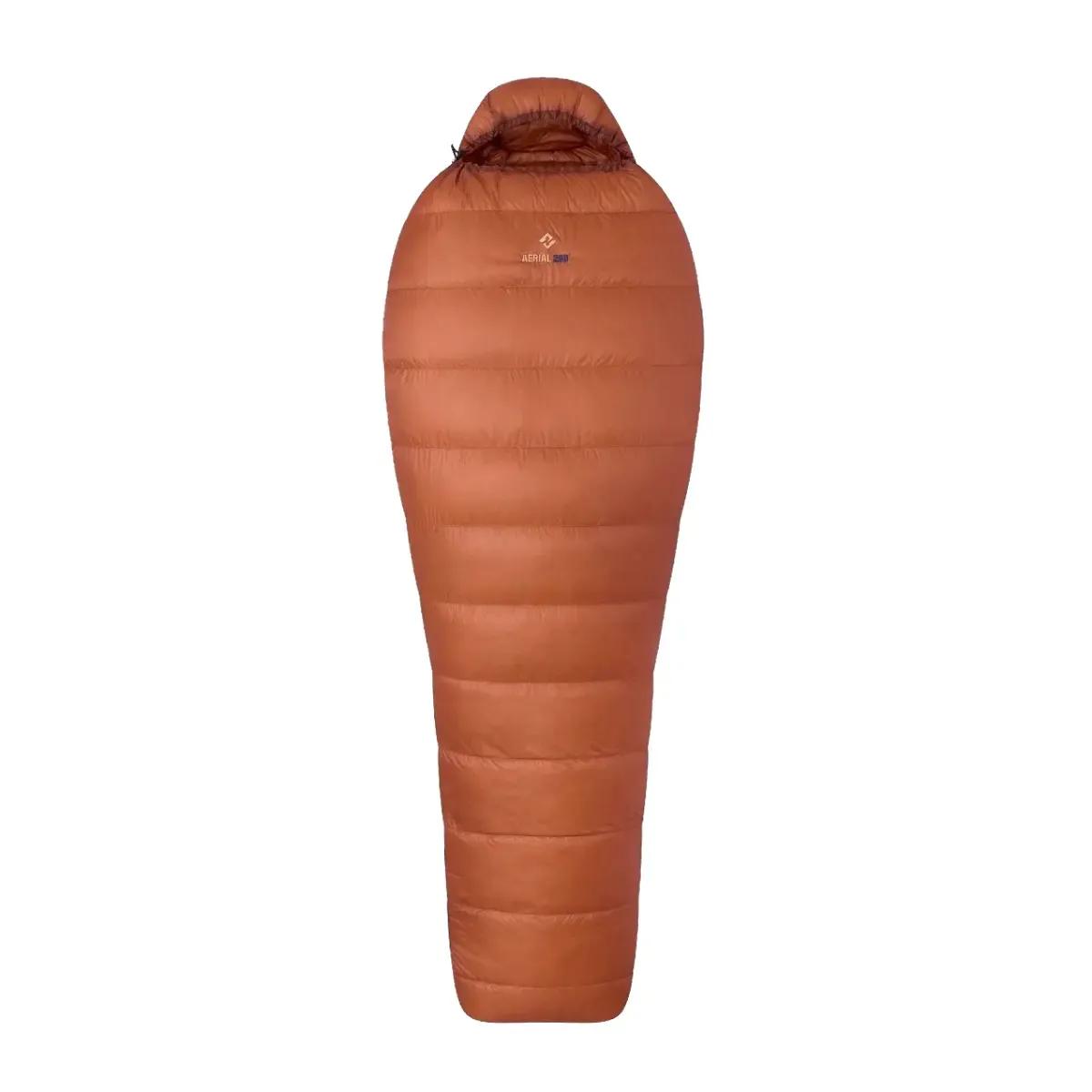 Aerial 250 ma ściśle przylegający kształt mumii zaprojektowany dla osób o maksymalnej wysokości 185 cm. Szerokość śpiwora wynosi 77 cm w okolicy ramion i 51 cm w okolicy nóg, co wspiera efektywne utrzymanie ciepła. Dolna część śpiwora składa się z jednej warstwy materiału ultralekkiego bez izolacji puchowej, co znacznie obniża wagę.
