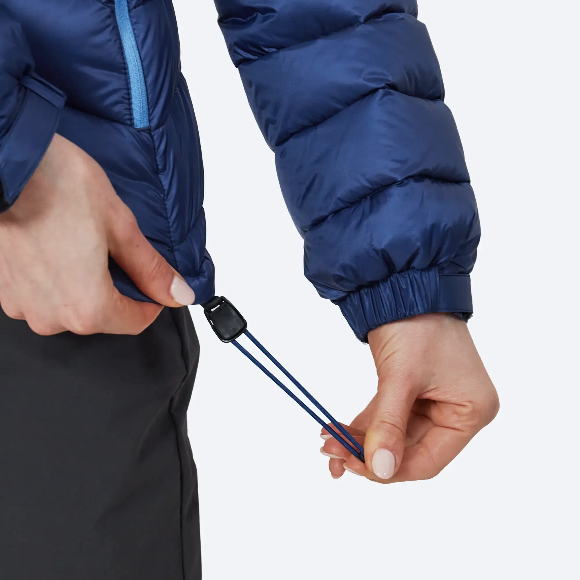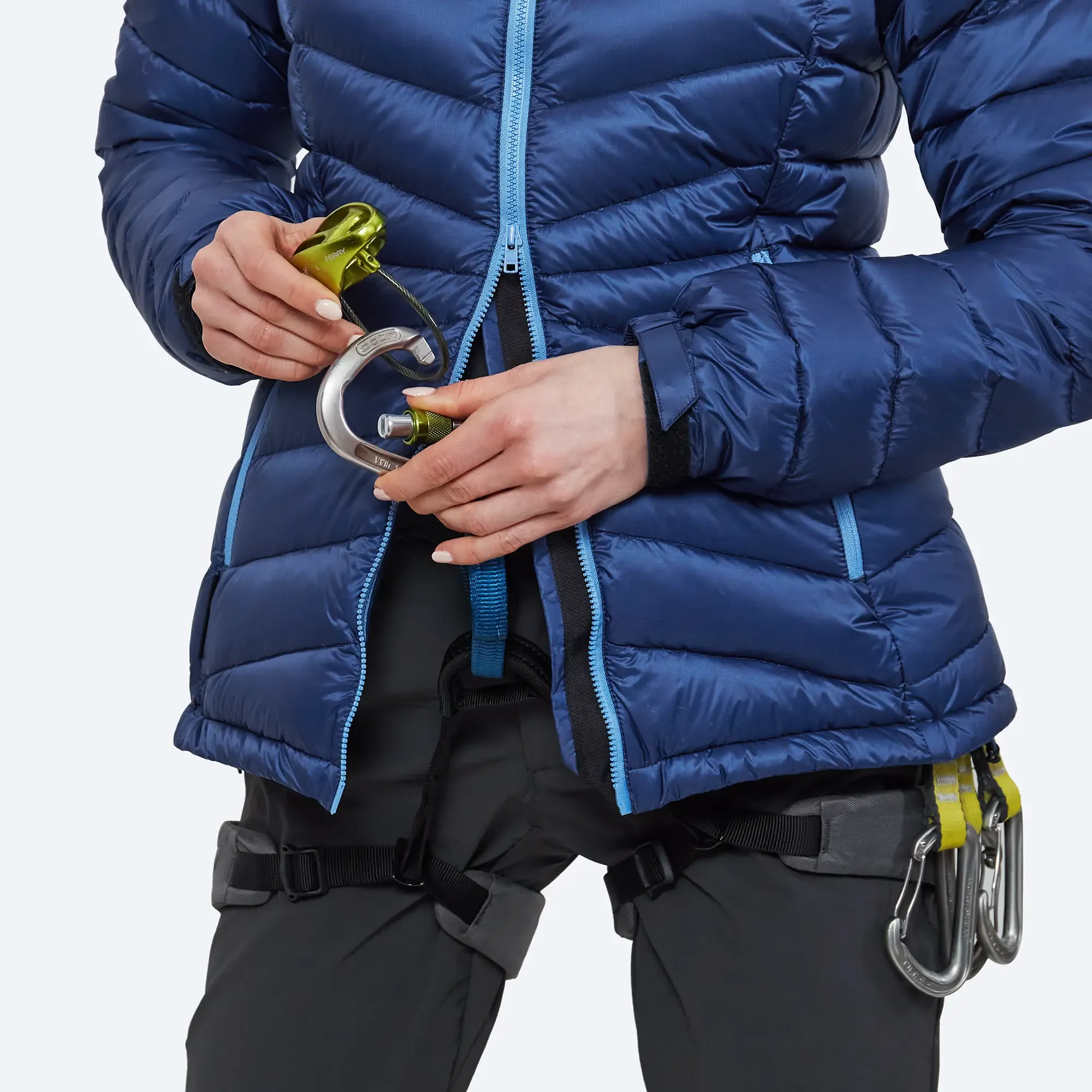 Dopracowana damska kurtka puchowa, która dzięki wysokiej jakości puchowi i lekkim materiałom oferuje doskonały stosunek ciepła do wagi. Z minimalistycznego kroju wynika ogólnie węższy fason kurtki. Została wykonana z lekkiego materiału Pertex Quantum Pro i wypełniona 125 gramami puchu gęsiego o fill power 850 cuin z dodatkową hydrofobową impregnacją. Kurtkę można spakować do zewnętrznej kieszeni.