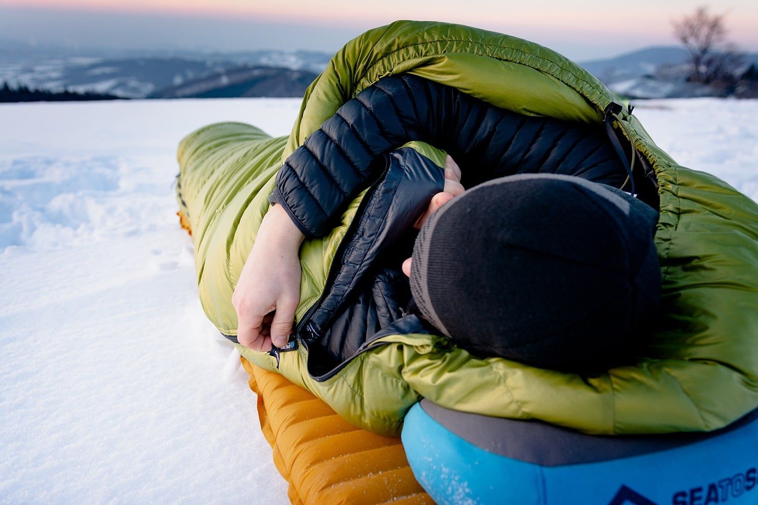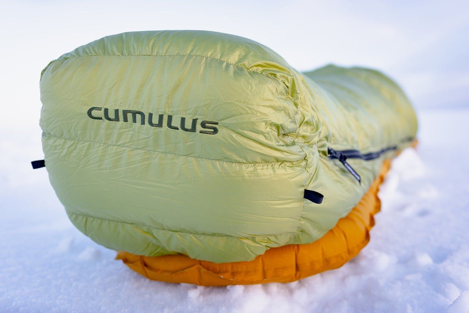 Śpiwór ma 175 cm długi zamek YKK z poszerzonym suwakiem, żeby nie blokował się w materiale podczas zapinania. U nóg znajdziesz drugiego suwaka, który jest idealny do wentylacji. Za zamkiem, po wewnętrznej stronie, jest podłużna komora wypełniona puchem, która minimalizuje utratę ciepła przez sam zamek. Dwa śpiwory Cumulus z zamkami w przeciwnych kierunkach (lewy + prawy) da się ze sobą połączyć.