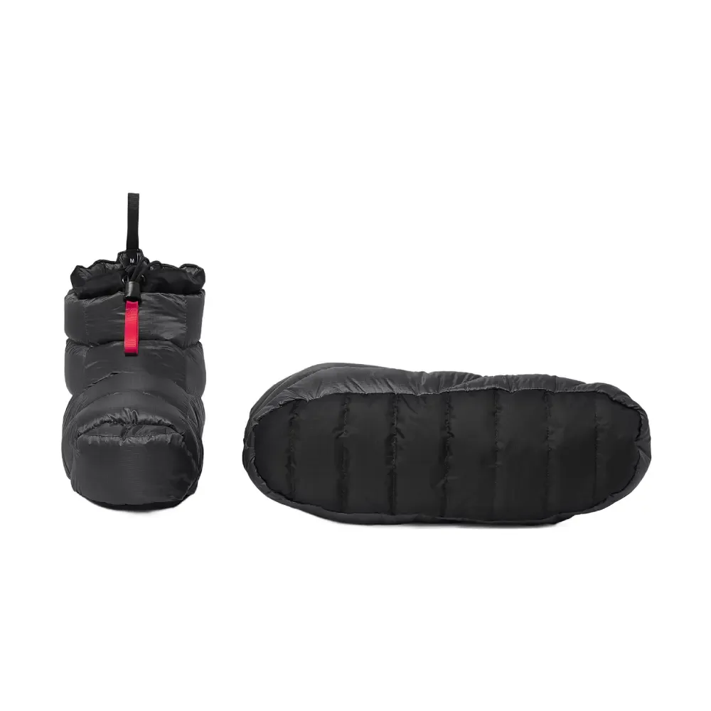 Dopracowane puchowe kapcie (buty) dla tych, którym wiecznie marzną stopy. Dzięki starannemu doborowi najlepszych materiałów i wysokiej jakości puchu kapcie są lekkie jak piórko i spakujesz je do worka wielkości pomarańczy.