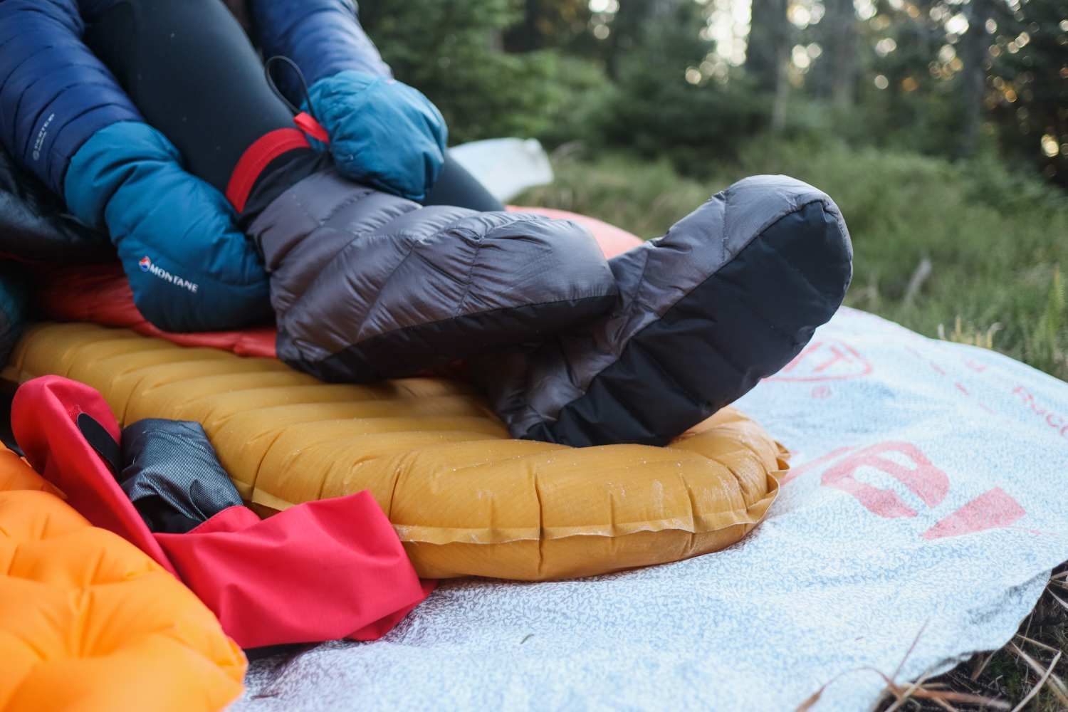 Klapki są wypełnione 40 gramami puchu gęsi o fill power 850 cuin z hydrofobową impregnacją (PFC free), dzięki czemu lepiej znoszą wilgoć.