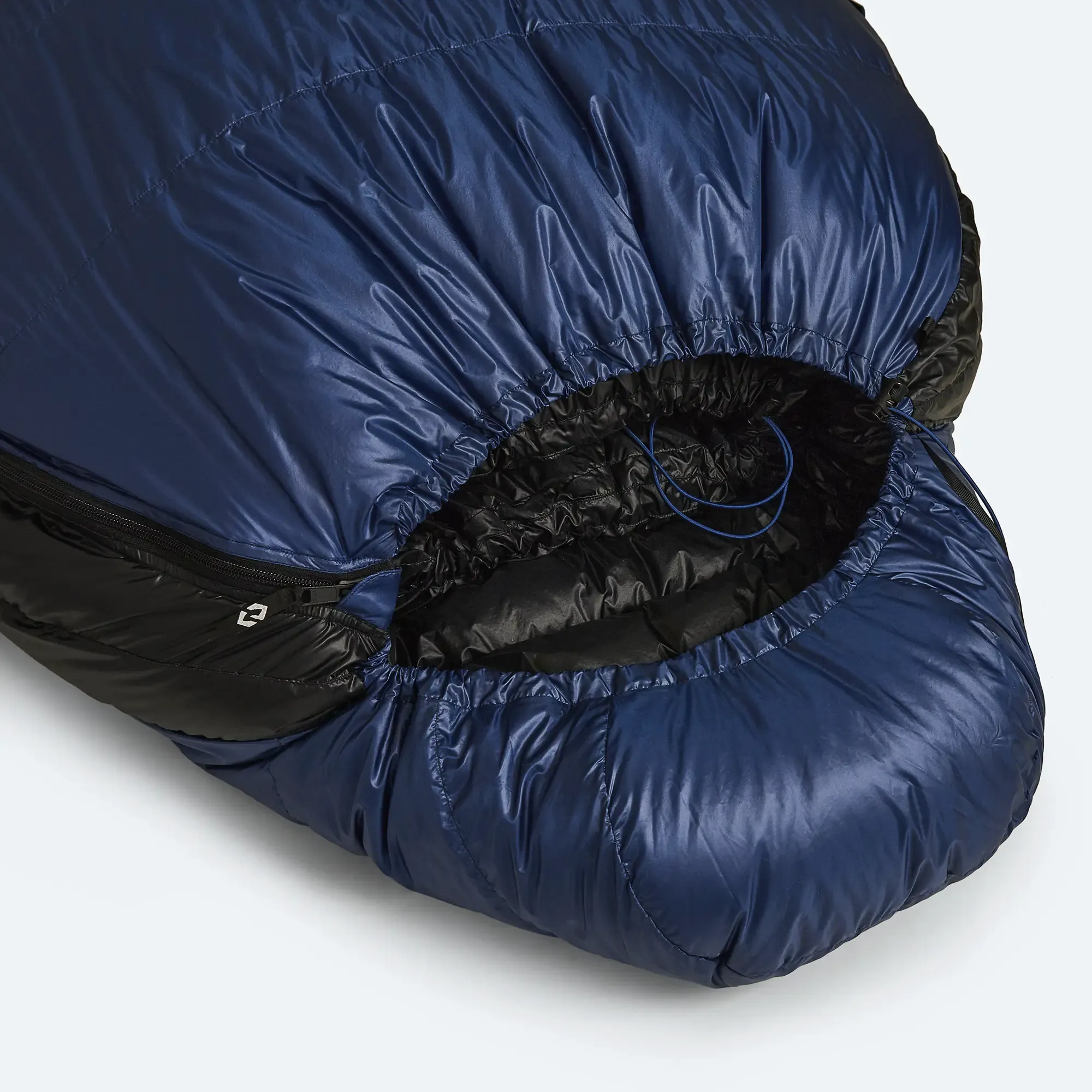 Dla łatwego orientowania się jest dostępne ściąganie kaptura i kołnierza, kaptur ściągasz płaskim paskiem, a kołnierz gumką. Śpiwór ma puszysty kołnierz z puchu, który obejmie twój kark z obu stron i zapobiegnie uciekaniu ciepła przez kaptur. Śpiwór ma po obu stronach dwie podłużne komory, co powinno pomóc lepiej rozłożyć puch w śpiworze, a tym samym przyczynić się do komfortu termicznego. Wewnątrz śpiwora jest siatkowa kieszeń na telefon, zatyczki do uszu lub inne drobnostki.