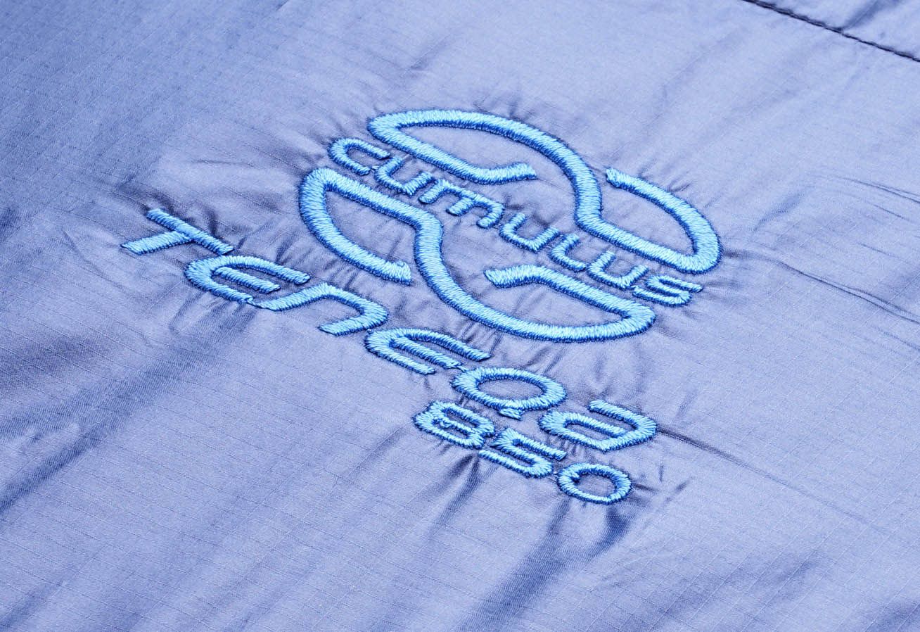 Twój śpiwór jest wypełniony 850 gramami gęsiego puchu z plnnością 850 cuin. Stosunek puchu do drobnych piórek wynosi 95/5. Górne komory są oddzielone od dolnych i są wypełnione o kawałek większą ilością puchu. Puch jest tutaj podzielony w stosunku 55/45.
