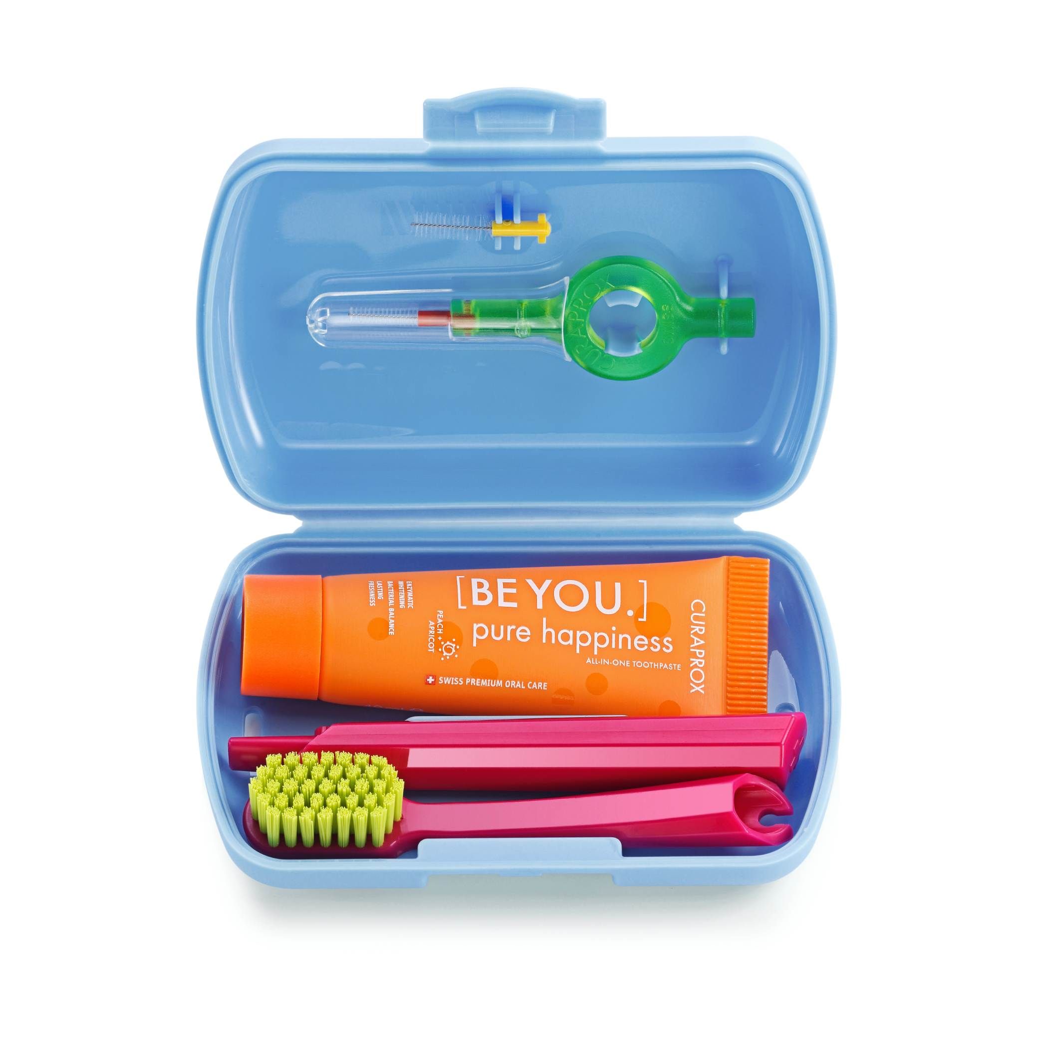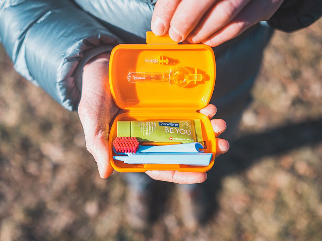 Zestaw Travel szwajcarskiej firmy Curaprox to ultralekki i kompaktowy zestaw do higieny jamy ustnej. Zawiera wszystko, czego potrzebujesz do codziennej pielęgnacji zębów i dziąseł. Dzięki praktycznemu opakowaniu zmieści się nawet w mniejszych kieszeniach. Waga całego zestawu to 52 gramy.