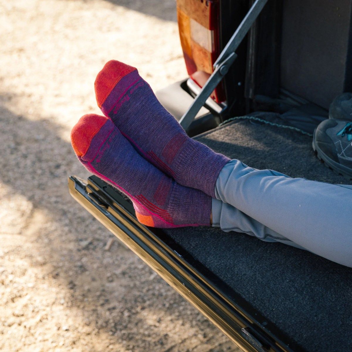 Dámské merino ponožky Darn Tough Hiker 1/4 Midweight jsou kotníkovou verzí legendárních ponožek Darn Tough se střední gramáží. Můžeš je nosit po celý rok v lehkých běžeckých trailovkách nebo nízkých trekových botách. Perfektně padnou, nezpůsobují puchýře a polstrování chodidla tlumí nárazy při chození. Jako u všech modelů Darn Tough, i tady se můžeš spolehnout na doživotní záruku na díry.