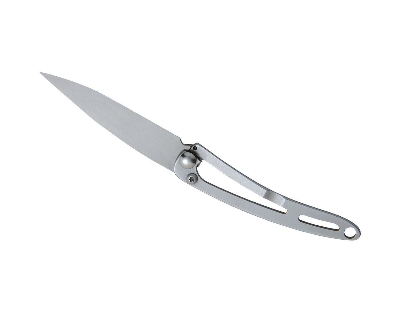 Ultralekkie i minimalistyczne noże francuskiej marki deejo są idealne w podróże, na trekkingi i wycieczki. Dostępne są w trzech rozmiarach (15 g, 27 g, 37 g) i w różnych wersjach wykończenia. Nóż Naked 15 g to najmniejszy model, zbudowany wyłącznie z ostrza, rękojeści i blokady.
