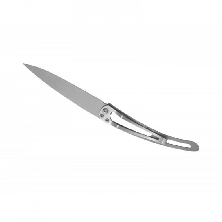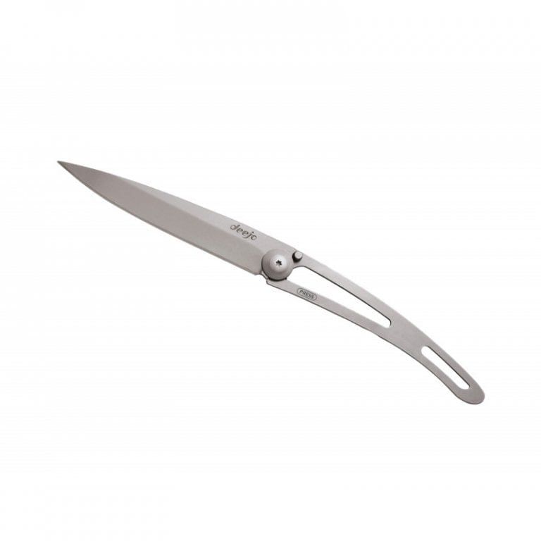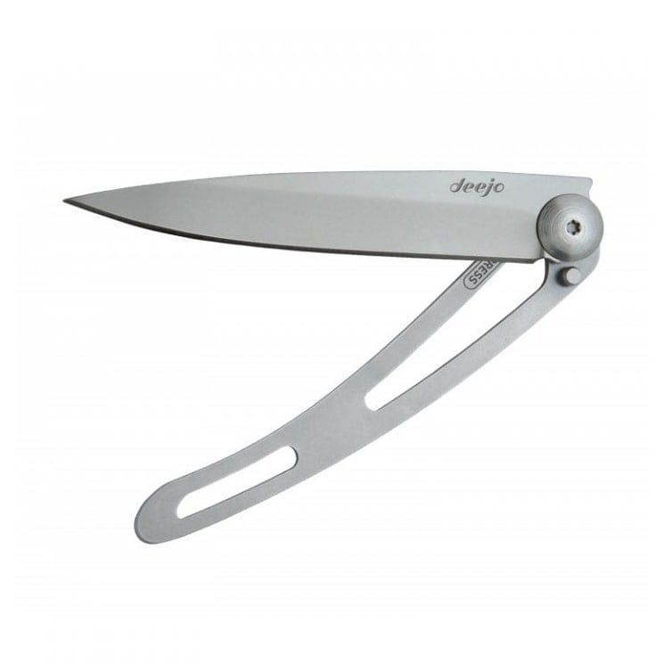 Ultralekkie i minimalistyczne noże francuskiej marki deejo są idealne w podróż, na trekking i wycieczki. Dostępne są w trzech rozmiarach (15 g, 27 g, 37 g) i w różnych wariantach wykończenia. Naked 37g to największa wersja noży kieszonkowych, składająca się z ostrza o długości 9,5 cm, rękojeści, blokady i klipsa do przypięcia.