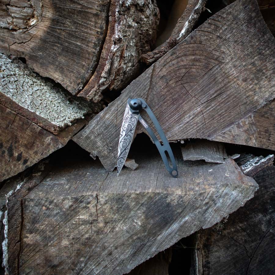 Ultralekkie i minimalistyczne noże francuskiej marki Deejo są idealne w podróży, na trekking i wycieczki. Dostępne są w trzech rozmiarach (15 g, 27 g, 37 g) i różnych wariantach wykończenia. Wersja Tattoo Black 15g Pacific Naked ma na ostrzu laserowo naniesiony motyw morskich fal.