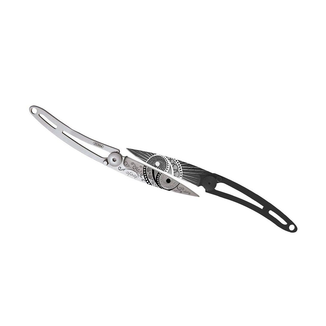Zestaw dwóch scyzoryków kieszonkowych z motywem jin & jang, idealny na prezent. Ultralekkie i minimalistyczne noże francuskiej marki deejo świetnie sprawdzą się w podróży, na trekkingu i wycieczkach. Dostępne są w trzech rozmiarach (15 g, 27 g, 37 g) i w różnych wariantach wykończenia.