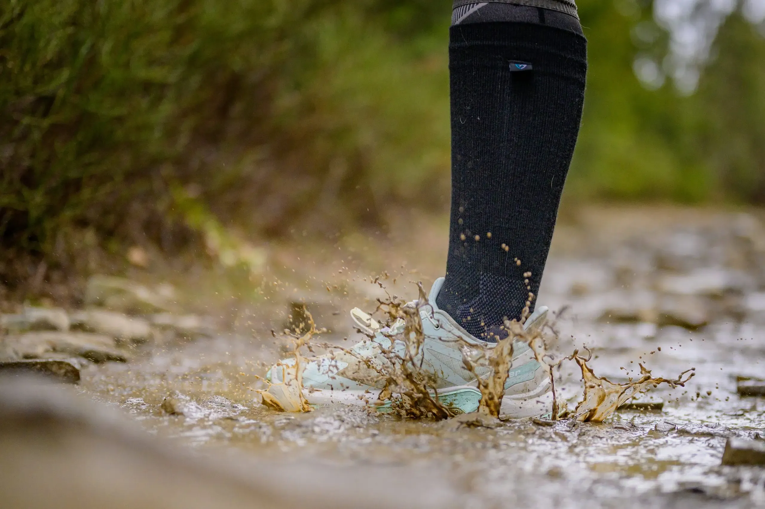 My używamy tych skarpet w butach trailowych podczas przejść gór w chłodnej porze roku i zimą – na co często nie zdecydowalibyśmy się w zwykłych skarpetach. Świetnie sprawdzają się także w mokrym terenie i podczas deszczu. Dzięki nim podczas wędrówek unikamy pęcherzy spowodowanych długim chodzeniem z mokrymi stopami. Skarpety mimo wodoodporności zachowują dobrą oddychalność.