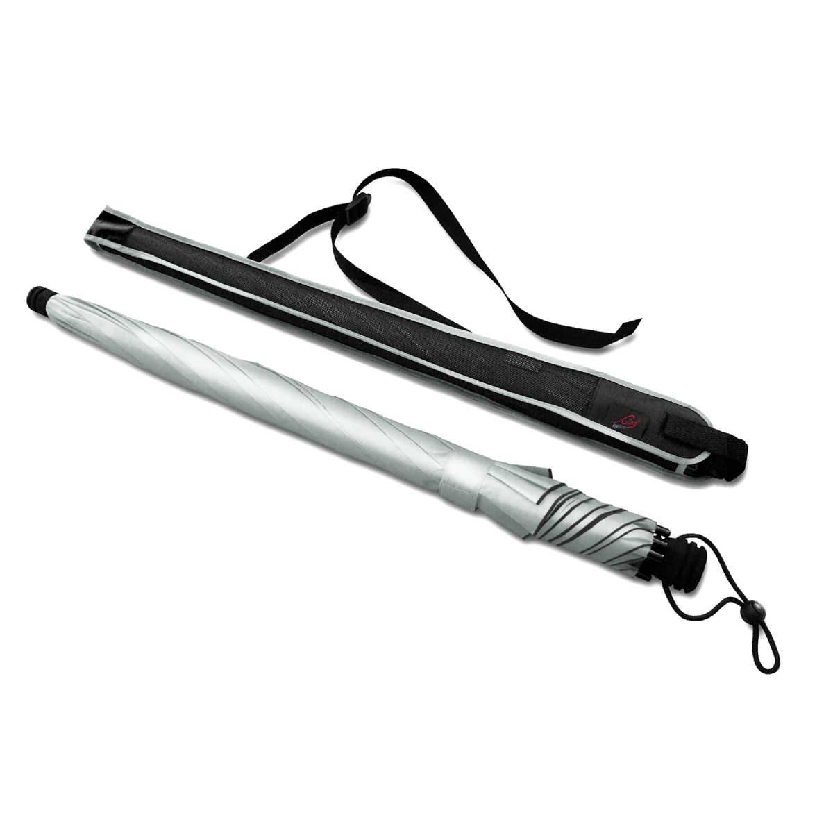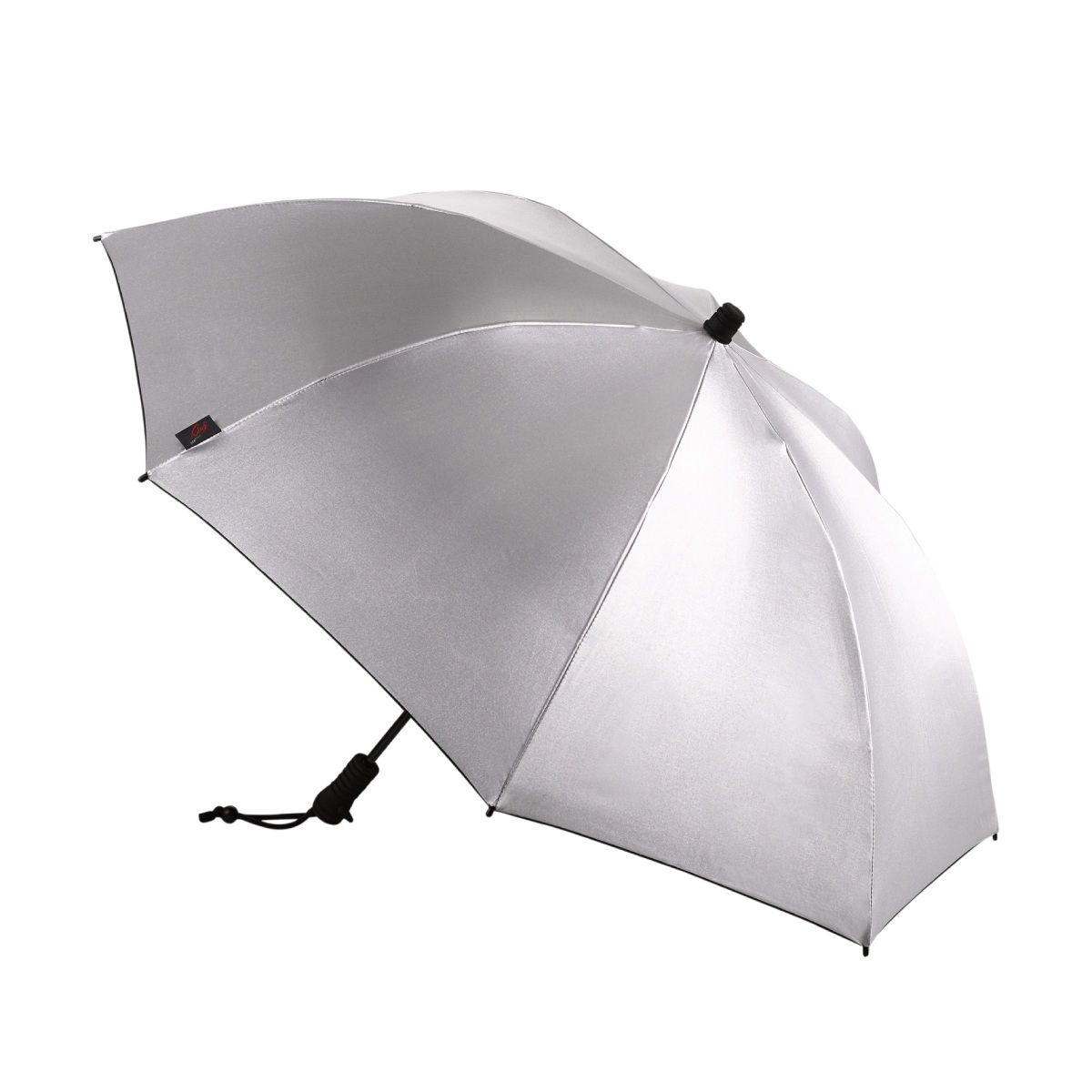 Parasol EuroSchirm Swing Liteflex z srebrną warstwą refleksyjną zapewnia świetną ochronę nie tylko przed deszczem, ale także przed słońcem. Znalazłoby zastosowanie zarówno na krótkich wypadach, jak i długich wędrówkach. Ważący 209 gramów należy do jednych z najlżejszych turystycznych parasoli z ochroną UV na świecie.