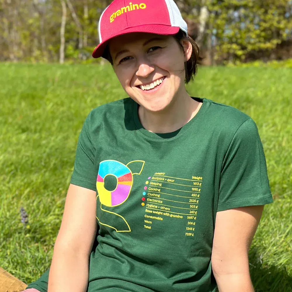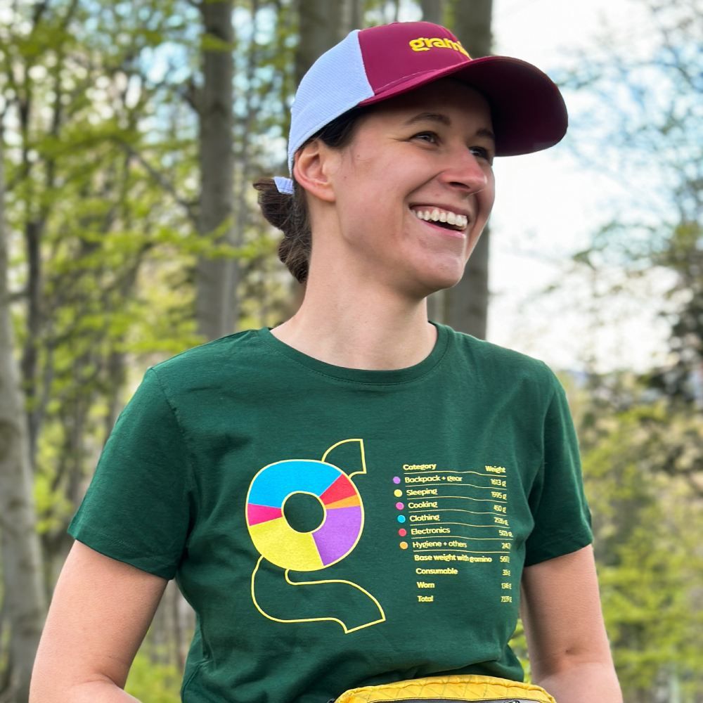 Koszulka Gramino Gear List z naszej własnej pracowni jest inspirowana prawdziwą listą sprzętu, którą przygotowaliśmy w naszej ulubionej aplikacji LighterPack. To zestaw, z którym nie musiałabyś się obawiać wyruszyć nawet na kilkutysięczny szlak w temperaturach do ok. 0 °C. Co uwzględniliśmy na liście sprzętu na koszulce o bazowej wadze (base weight) 5,7 kg? Zobacz tutaj i zainspiruj się przy tworzeniu własnej listy sprzętu – znajdziesz tam też odnośniki do poszczególnych pozycji.