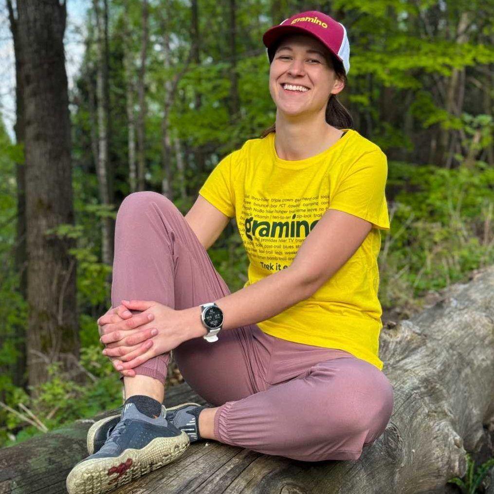 Koszulka Gramino Trail Slang z naszej własnej pracowni jest inspirowana pojęciami i slangowymi wyrażeniami, które możesz usłyszeć w kontekście długodystansowych trekkingów i ultralekkiego sprzętu. Z tyłu na karku znajduje się symbol naszej marki Gramino.