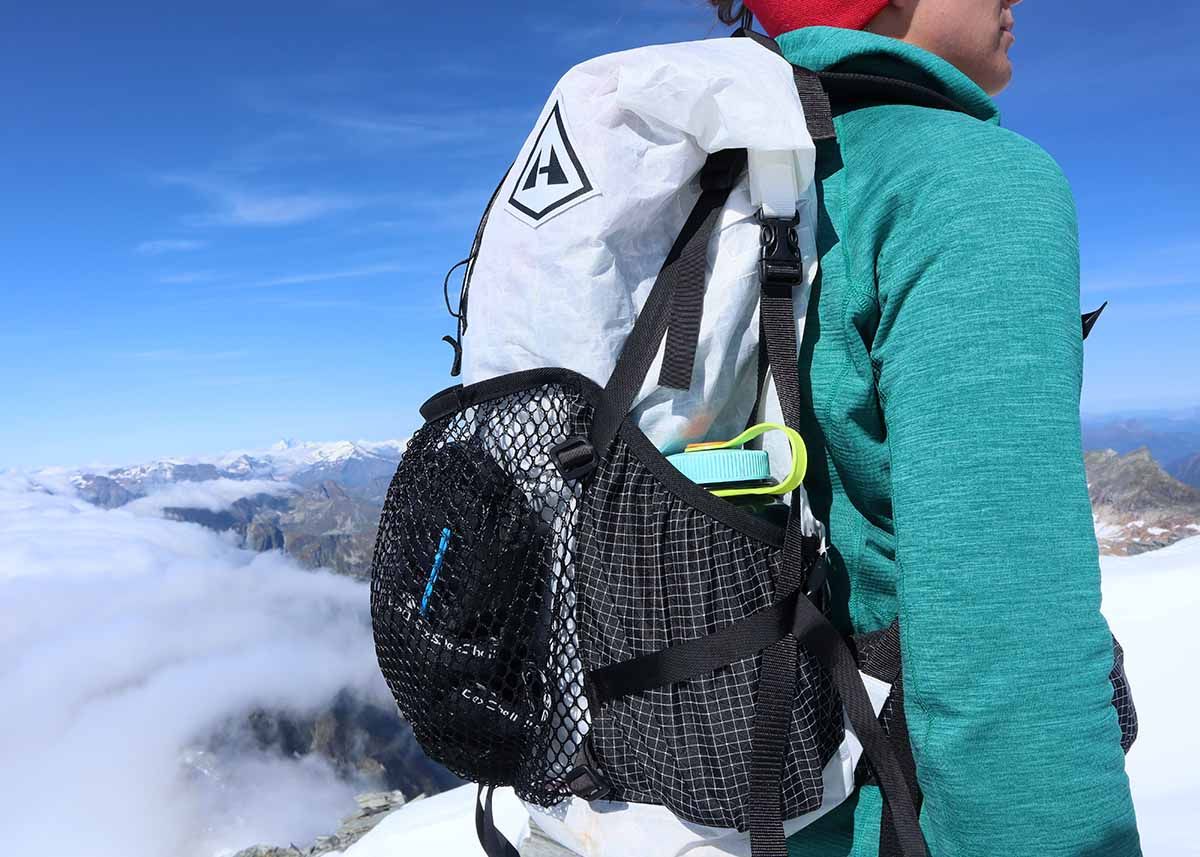 Zewnętrzne kieszenie: Boczne kieszenie są z bardzo wytrzymałego materiału Hardline z Dyneema®, dlatego plecak wytrzyma nawet przedzieranie się przez wąską, zarośniętą ścieżkę. Duża tylna kieszeń wykonana jest z mocnej siateczki z elastycznym obrzeżem, dzięki czemu możesz w niej łatwo suszyć mokre wyposażenie, a podczas deszczu woda po prostu spłynie.