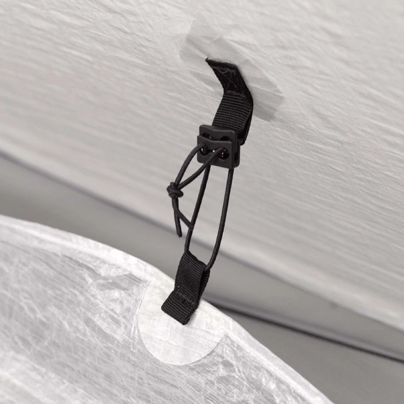 Podłogę możesz przymocować do ścian namiotu za pomocą wbudowanych pętelek i klamer wewnątrz namiotu, albo przeciwnie, poluzować, aby poprawić cyrkulację powietrza.
