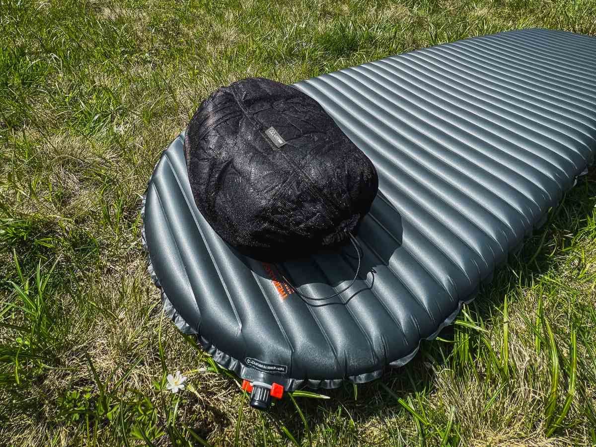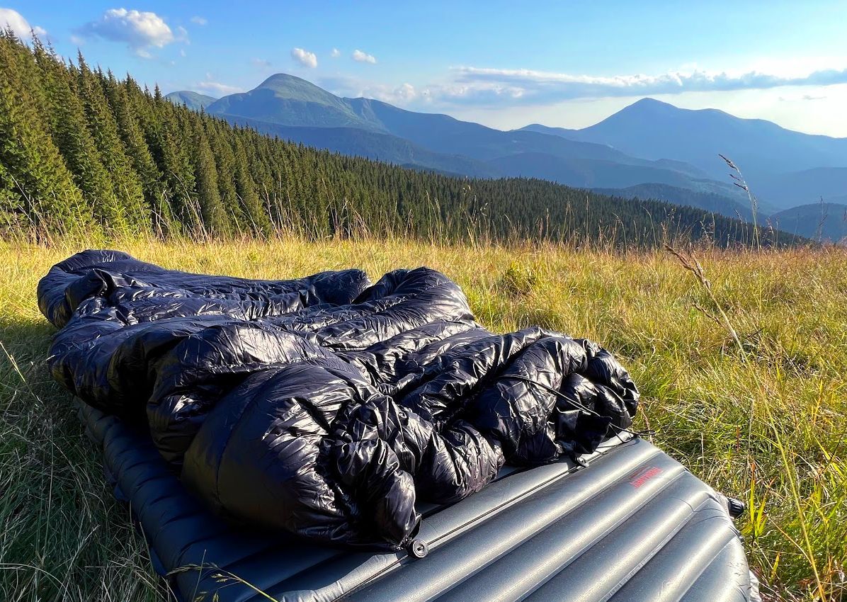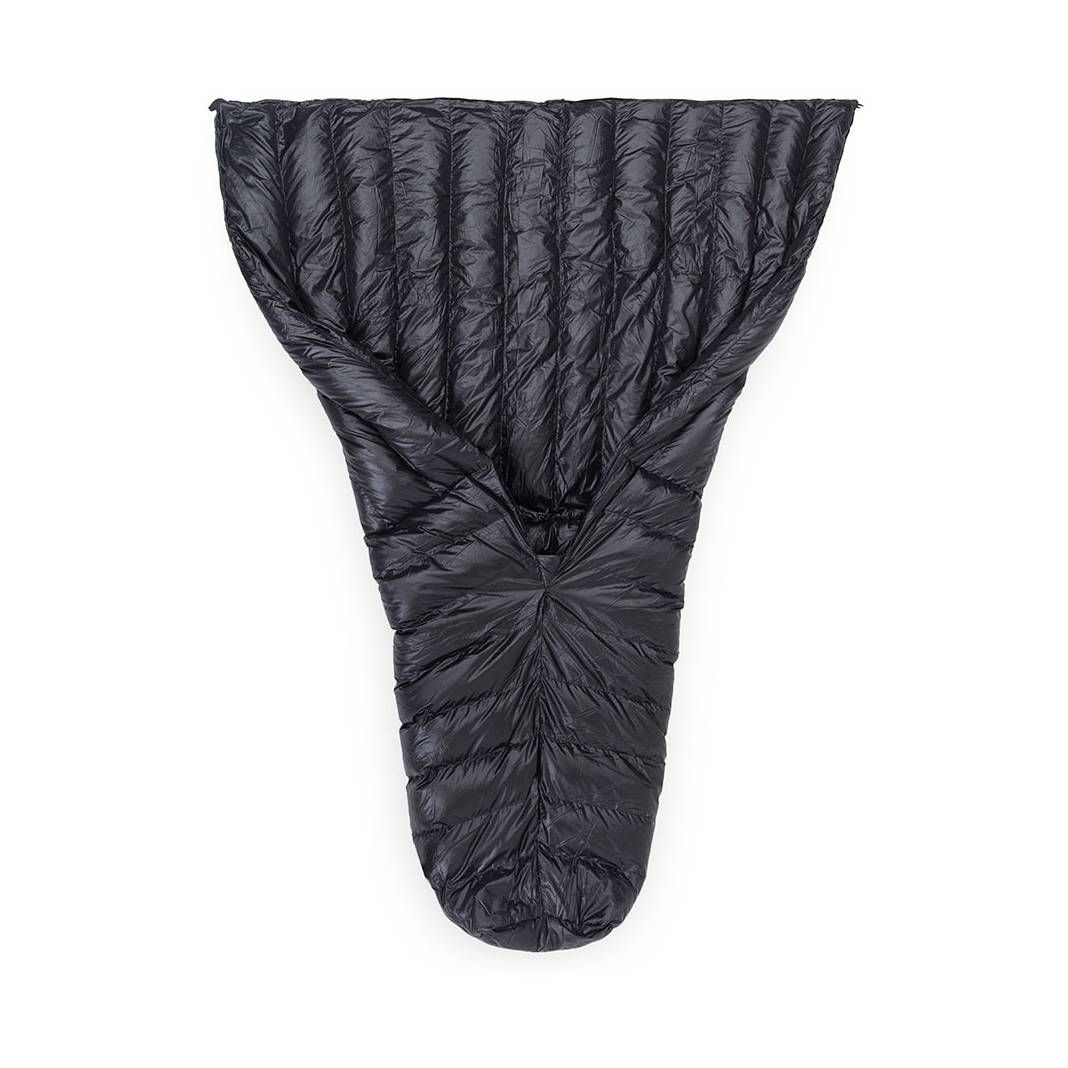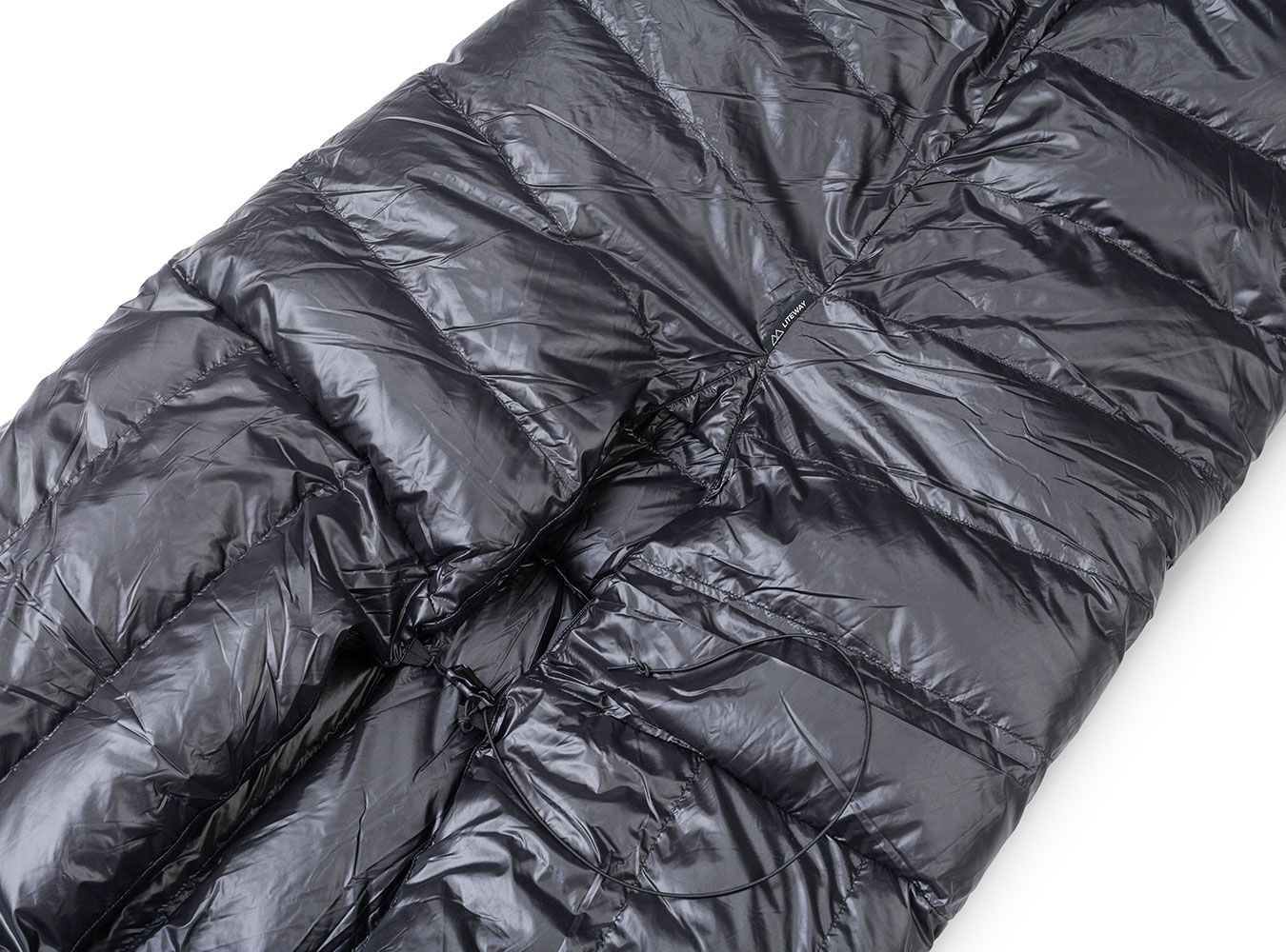Aby zaoszczędzić wagę i poprawić kompresję, quilt jest pozbawiony wszystkiego, co niepotrzebne. Na jego tylnej stronie od pasa w górę usunięto nieskutecznie wykorzystany puch, który przez większość czasu byłby zgnieciony pod twoim ciałem i praktycznie nie miałby żadnego sensu. Aby otwór na plecach pozostał cały czas pod tobą, quilt jest mocowany do karimatki za pomocą elastycznych pasków. Quilt pozostaje w podstawowej pozycji, a ty się w nim obracasz. Quilt można używać z każdym typem karimatki (napełnianą powietrzem, piankową). Quilt nie ma kaptura, możesz go zastąpić czapką lub kurtką puchową/zhodną z kapturem.