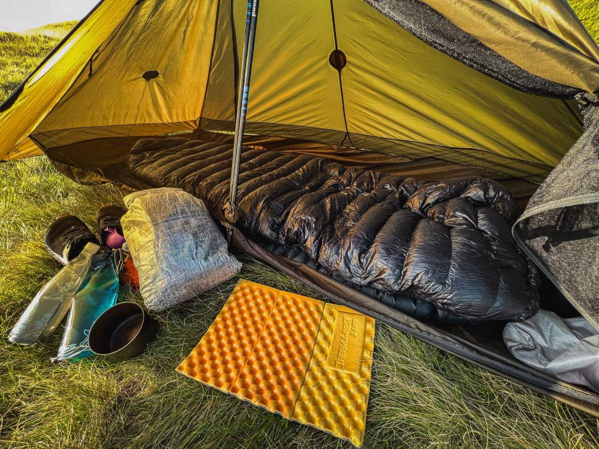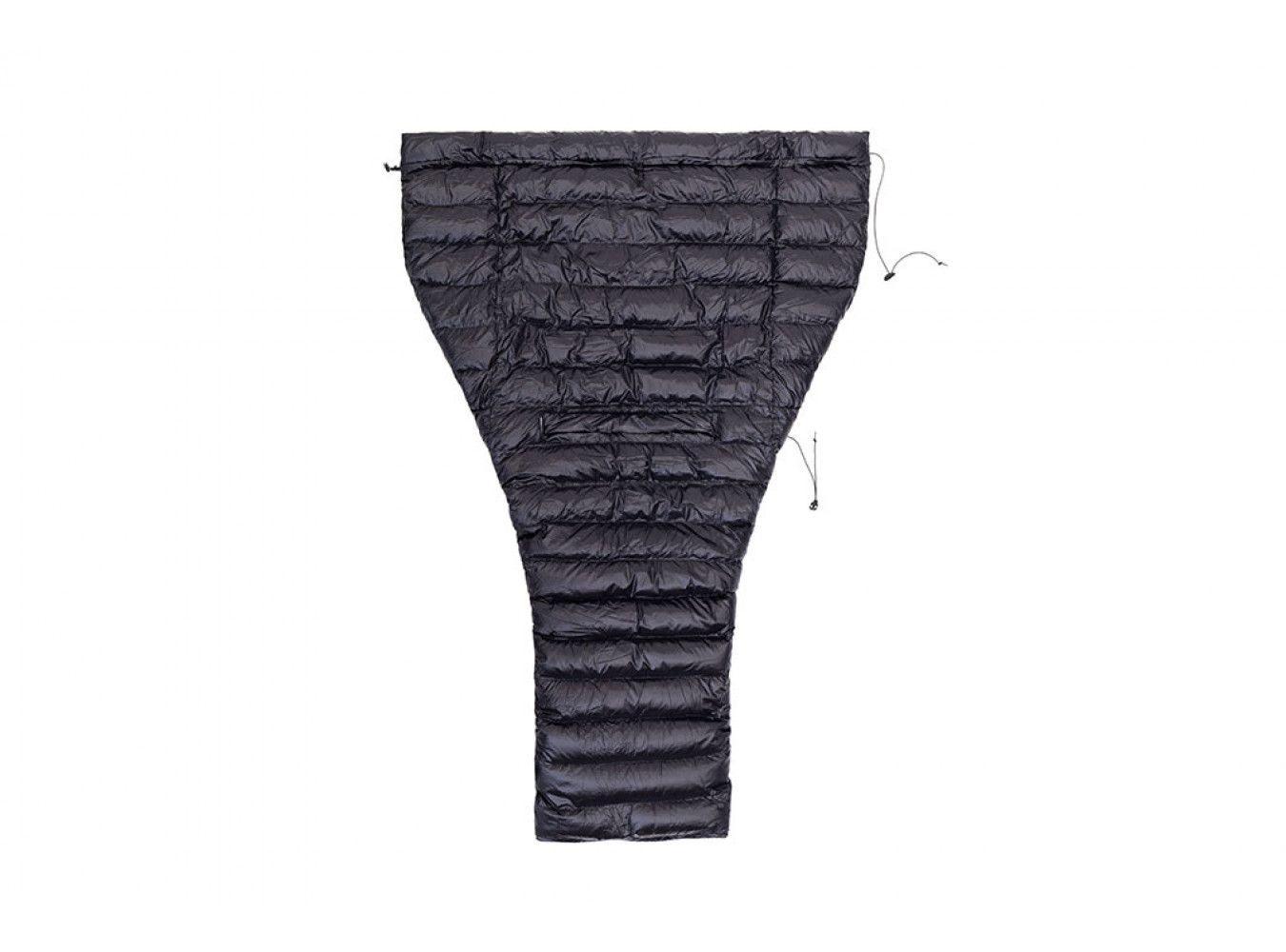 Aby zaoszczędzić na wadze i poprawić pakowność, quilt został pozbawiony wszystkiego, co zbędne. Na jego tylnej stronie, od pasa w górę, usunięto nieefektywnie wykorzystany puch, który przez większość czasu byłby przygnieciony pod twoim ciałem i praktycznie nie miałby żadnego sensu.