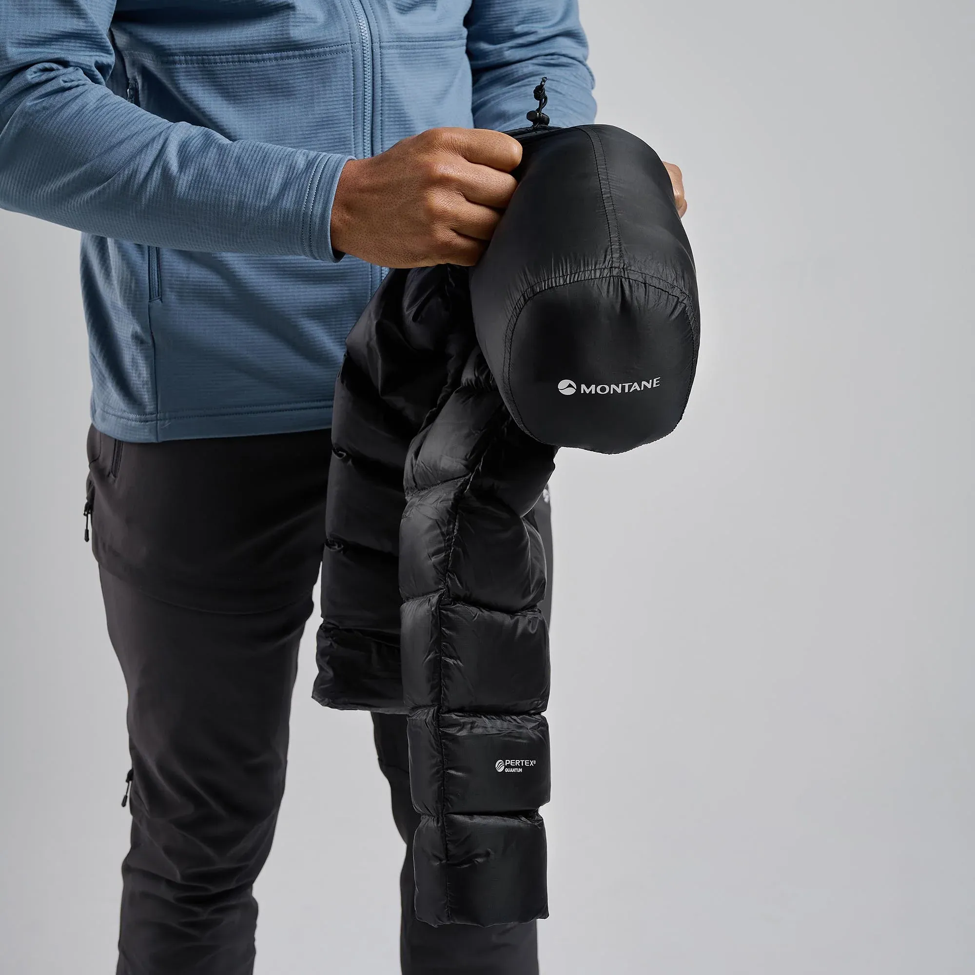 puchowa kurtka docieplająca, puch kaczki, waga puchu 210 g, fill power 750 cuin, hydrofobowa impregnacja puchu HyperDRY, zewnętrzna tkanina Pertex Quantum Eco DWR, podszewka PEAQ Down ECO DWR, przeszywana konstrukcja komór, regulowany kaptur, wysoka stójka, zamek YKK VISLON z dwoma suwakami, 2 zewnętrzne kieszenie na zamek, wewnętrzna kieszeń piersiowa na zamek, elastyczne wykończenie mankietów, regulowany dół, worek kompresyjny