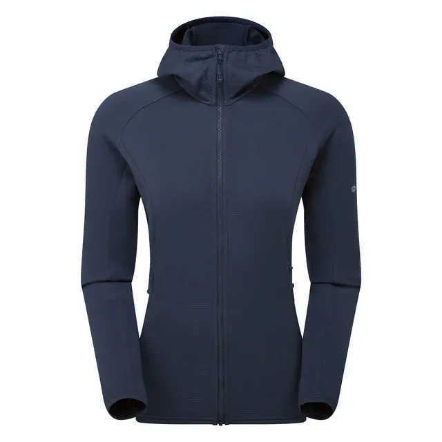 Montane Women’s Protium Hoodie to damska, elastyczna bluza z kapturem z materiału Thermo Grid z drapaną stroną wewnętrzną o strukturze siatki. Jest niezwykle wygodna, dobrze izoluje ciepło ciała, a jednocześnie skutecznie odprowadza pot. Idealna do użytku przez cały rok – jako zewnętrzna, ocieplająca warstwa w cieplejszych warunkach lub jako warstwa pośrednia zimą.