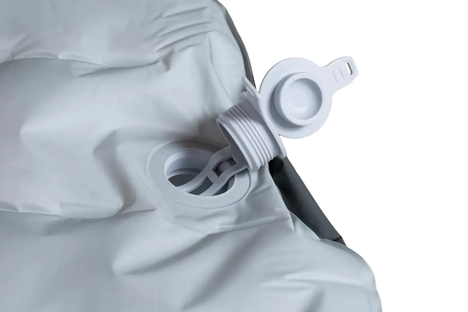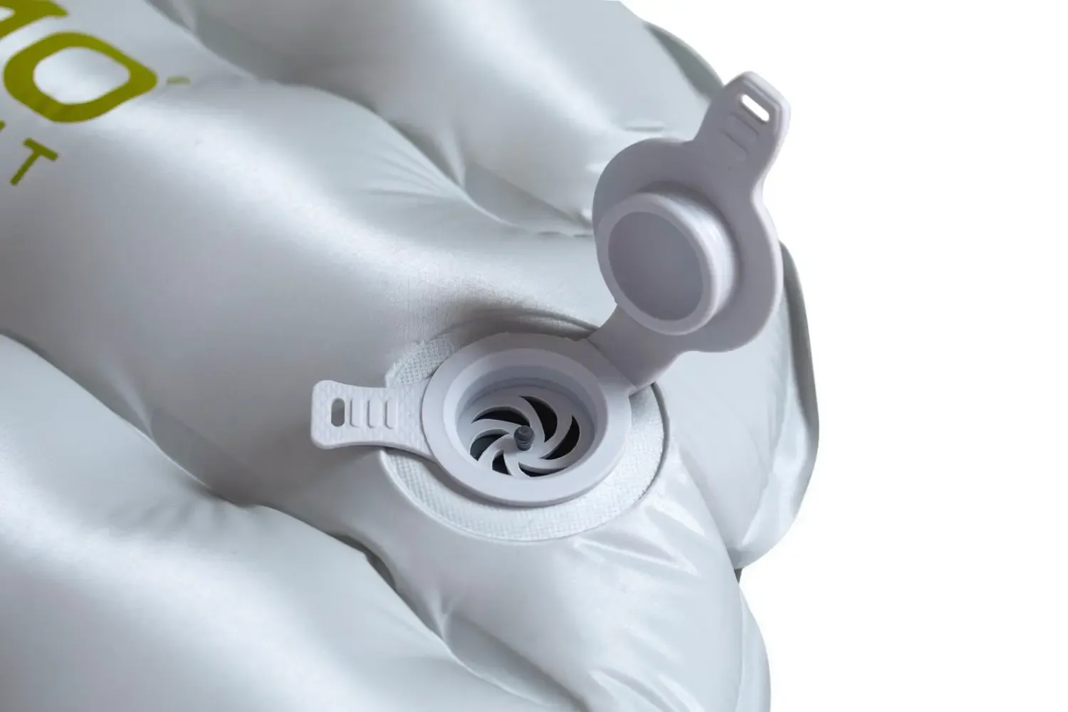 Łatwe napompowanie maty po otwarciu górnej nasadki zaworu i podłączeniu worka pompującego Vortex. Precyzyjna regulacja ciśnienia powietrza wewnątrz maty poprzez naciśnięcie wewnętrznego zaworka.