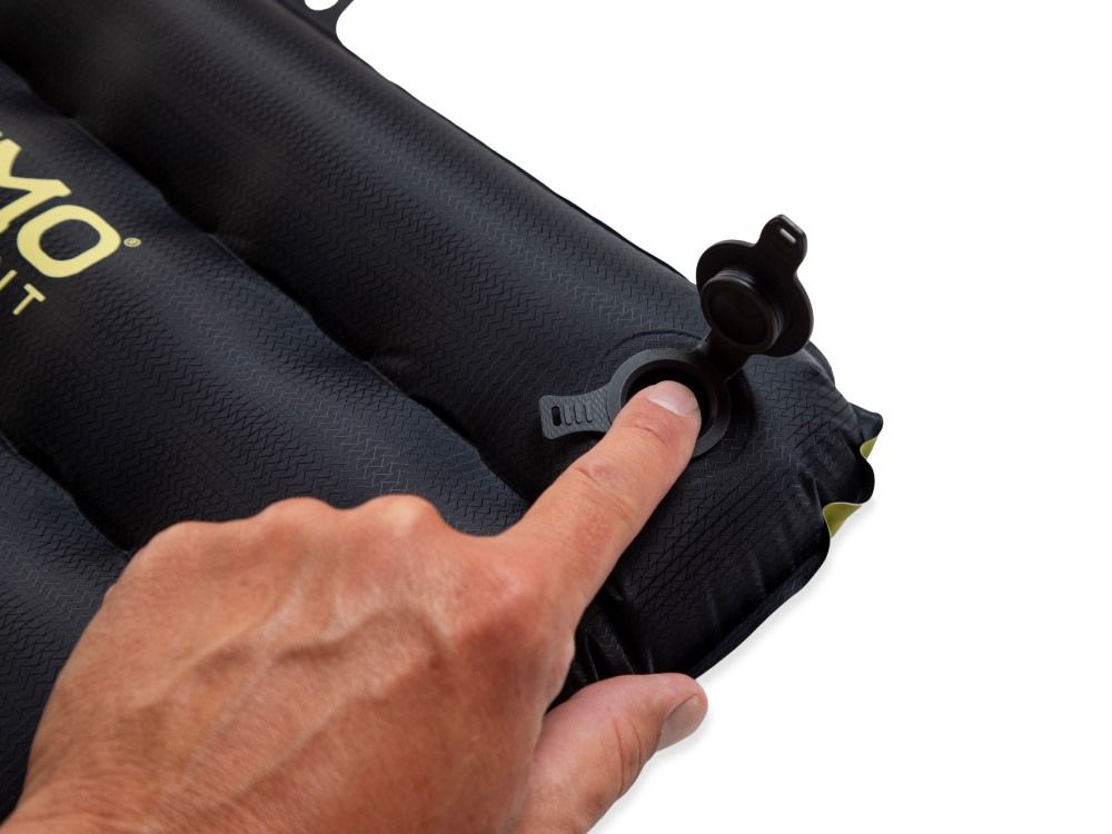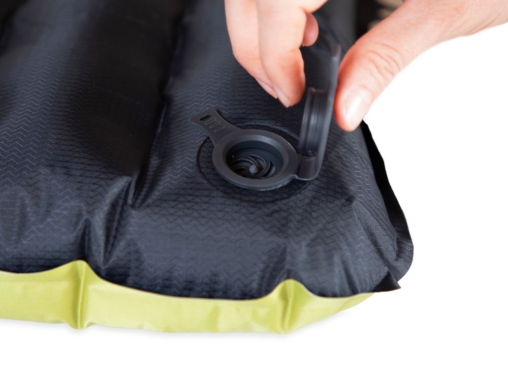 Delikatne dostosowanie ciśnienia powietrza wewnątrz maty do spania poprzez naciśnięcie wewnętrznego zaworu.