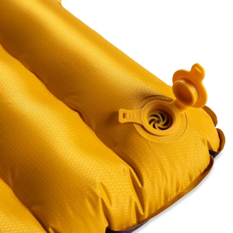 Płaski wielofunkcyjny zawór Laylow™ do łatwego dmuchania, szybkiego wypuszczania powietrza, a także do delikatnego dostosowywania ciśnienia powietrza wewnątrz maty.