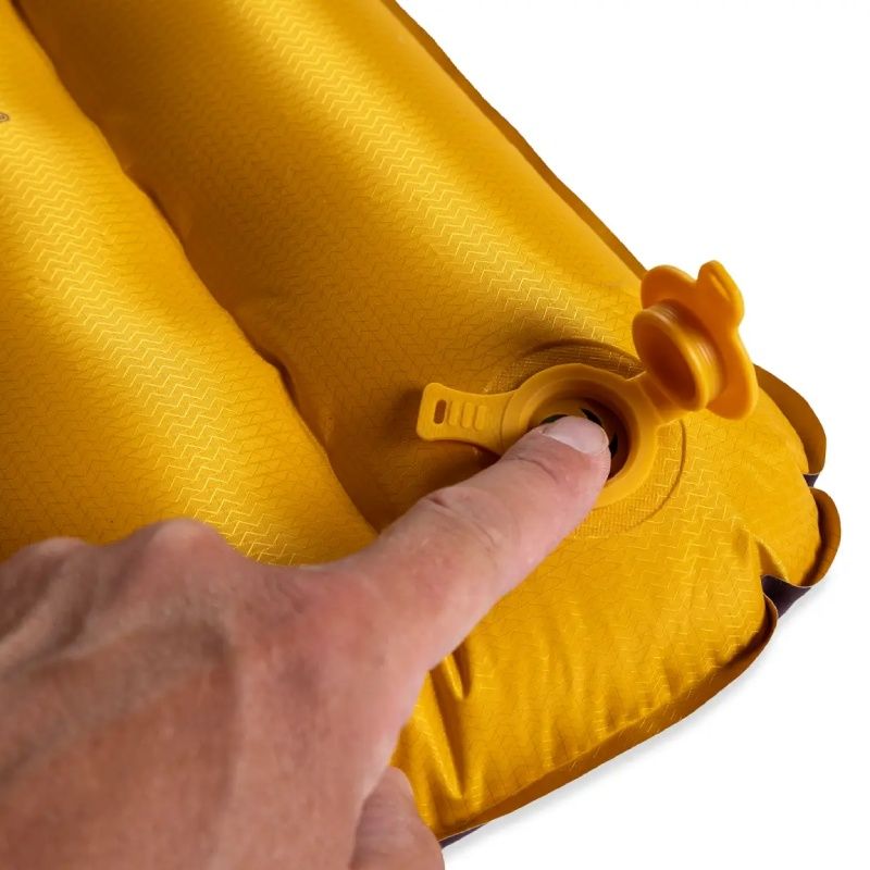 Drobne dostrojenie ciśnienia powietrza w środku karimatki za pomocą naciśnięcia wewnętrznego wentylka.