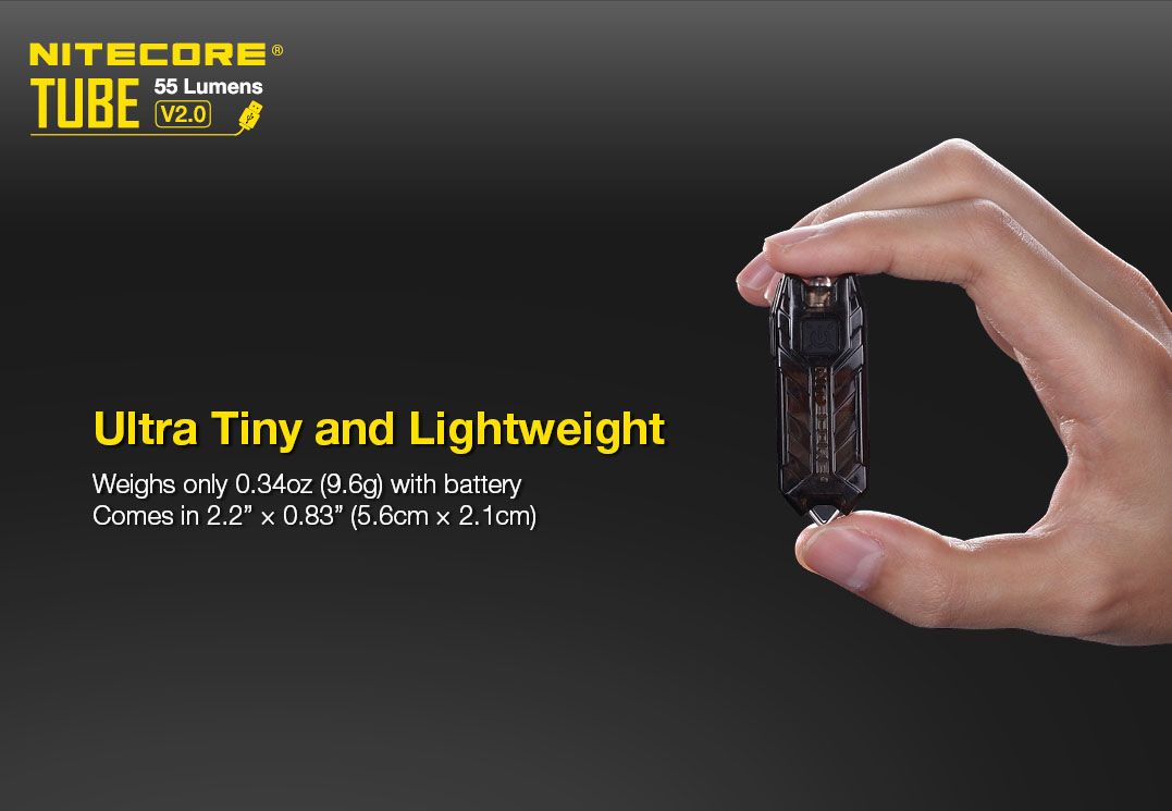 Nitecore TUBE 2.0 to miniaturowa, ultralekka, ale wydajna świeczka USB do ładowania, która osiąga moc do 55 lumenów. Obudowa latarki wykonana jest z bardzo wytrzymałego polikarbonatu i ma nierdzewny pierścień na klucze, dzięki czemu możesz ją mieć wszędzie ze sobą i zawsze pod ręką.