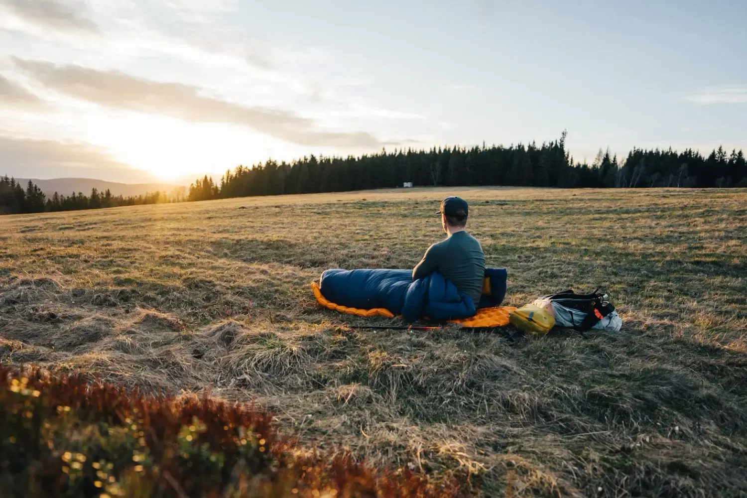 O izolacji od ziemi dba karimata. Żeby otwór na plecach pozostał przez cały czas pod tobą, przymocowuje się quilt do karimaty za pomocą elastycznych pasków. Quilt pozostaje w podstawowej pozycji, a ty się w nim obracasz. Quilt możesz używać z każdym typem karimaty (dmuchana, piankowa). Quilt nie ma jednocześnie kaptura – możesz zastąpić go czapką lub kurtką puchową/bluzy z kapturem.