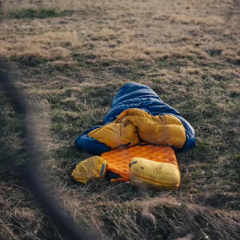 Abyś zaoszczędził na wadze i zwiększył efektywność, wkłady są pozbawione wszystkiego, co zbędne. Na jego tylnej stronie, od pasa w górę, usunięto nieefektywnie wykorzystany puch, który przez większość czasu byłby ugnieciony pod twoim ciałem i praktycznie nie miałby żadnego znaczenia.