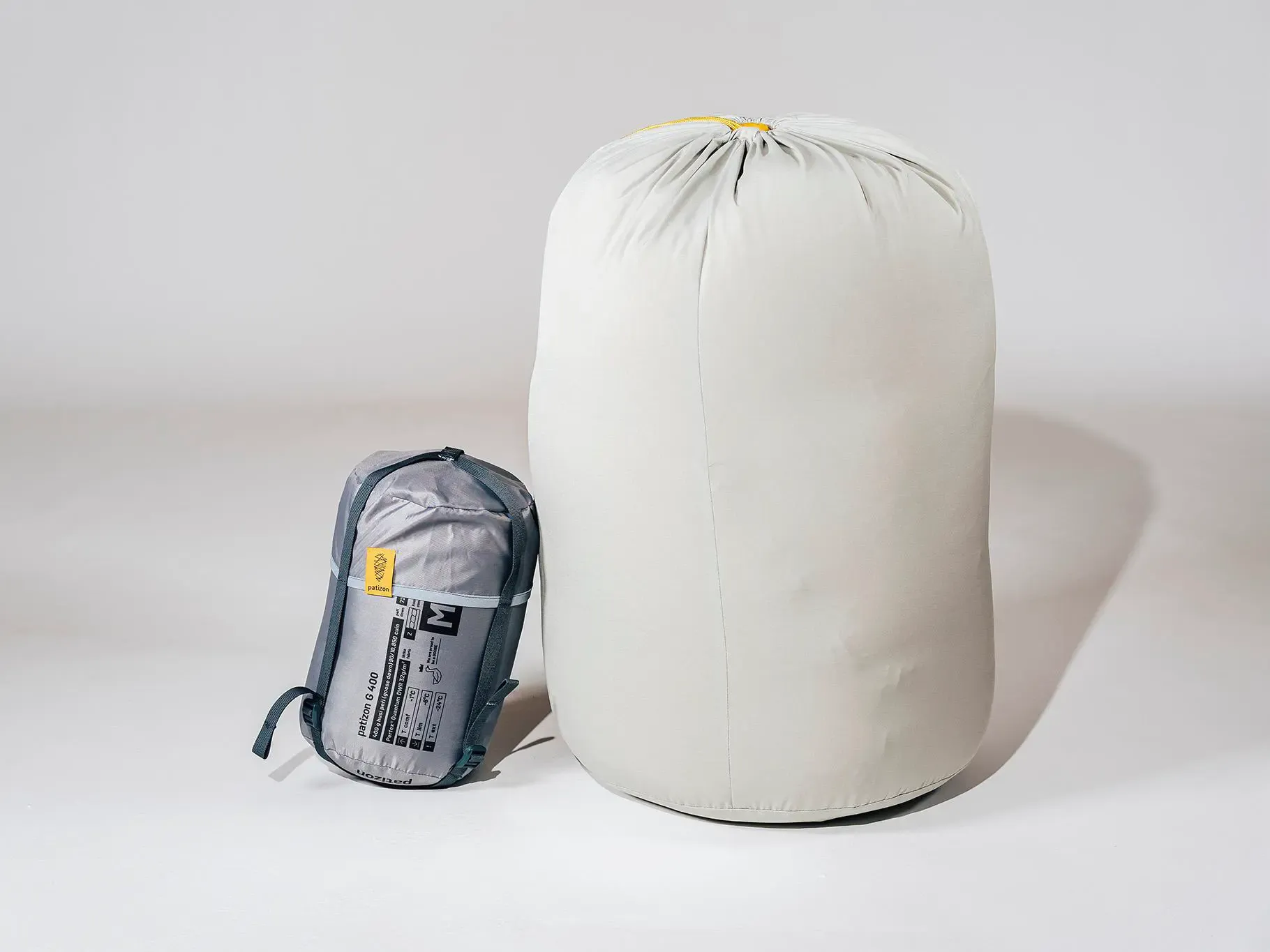 Innowacyjny puchowy śpiwór Patizon G400 jest wypełniony najwyższej jakości gęsim puchem o współczynniku 850+ cuin i skonstruowany z ekstremalnie lekkiego, świetnie oddychającego i wodoodpornego materiału Pertex Quantum. G400 to uniwersalny śpiwór trzysezonowy, który podtrzyma cię od wiosny do jesieni i jest idealnym wyborem dla wszystkich turystów, bikepackerów i wspinaczy z ograniczoną przestrzenią w plecaku lub torbie.