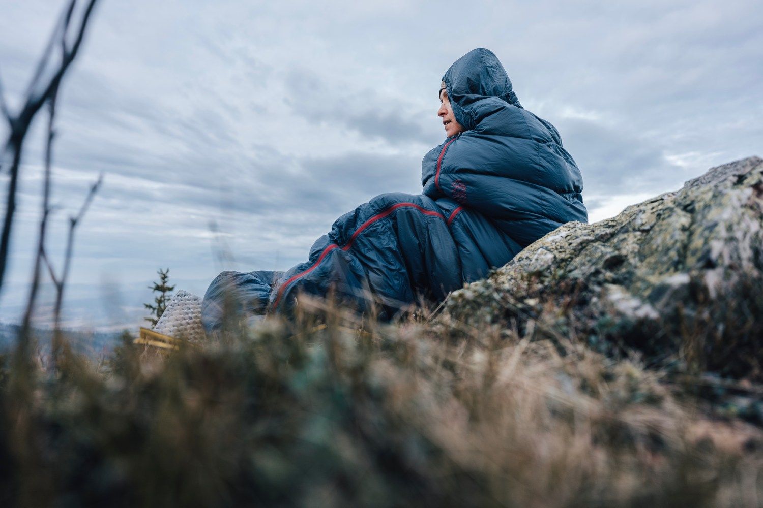 Anatomicznie uformowana komora na stopy zapewnia idealny rozkład puchu w komorach przez cały czas snu. Na dole znajdują się także oczka do zawieszenia śpiwora, na przykład podczas suszenia lub przechowywania.