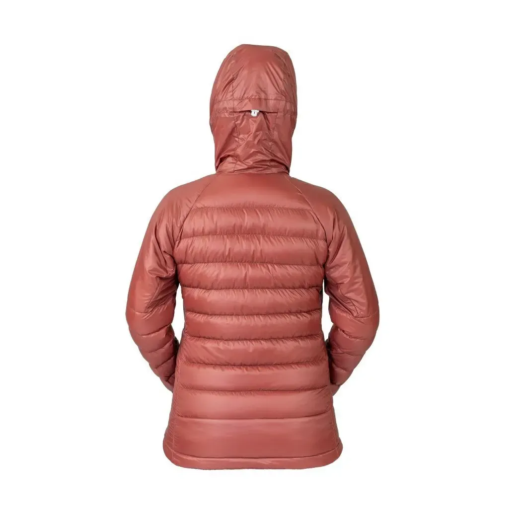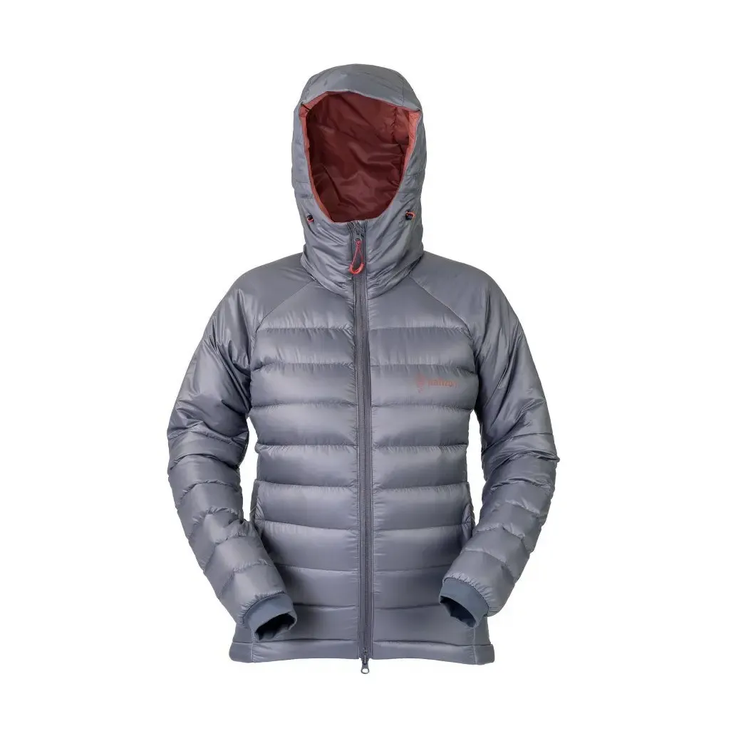 kurtka ocieplana, konstrukcja hybrydowa, puch gęsi, waga puchu 58 g, fill power 700+ cuin, syntetyczna izolacja Climashield Eco w strefach narażonych na ugniatanie, zewnętrzna tkanina Pertex™ Quantum™ (32 g/m²), impregnacja DWR, krój raglanowy, regulowany kaptur, wysoki kołnierz, dwukierunkowy centralny zamek YKK, 2 zewnętrzne kieszenie boczne na zamek z podszyciem z wełny merino, kieszeń piersiowa z ukrytym zamkiem, 2 wewnętrzne kieszenie, elastyczne mankiety, dolny brzeg z elastycznym ściągaczem