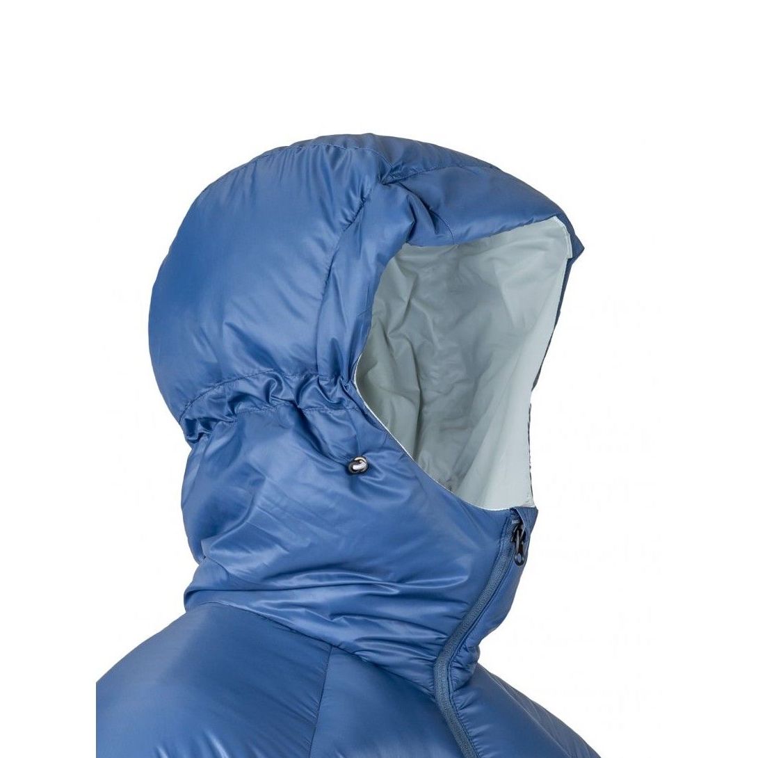 kurtka ocieplana, konstrukcja hybrydowa, puch gęsi, waga puchu 72 g, fill power 700+ cuin, syntetyczna izolacja Climashield Eco w strefach narażonych na ucisk, zewnętrzny materiał Pertex™ Quantum™ (32 g/m²), impregnacja DWR, krój raglanowy, regulowany kaptur, wysoka stójka, dwukierunkowy centralny zamek SHZ, 2 zewnętrzne kieszenie boczne na zamek z podszewką z meryno, kieszeń piersiowa z ukrytym zamkiem, 2 wewnętrzne kieszenie, elastyczne wykończenie mankietów, dolny brzeg z gumką