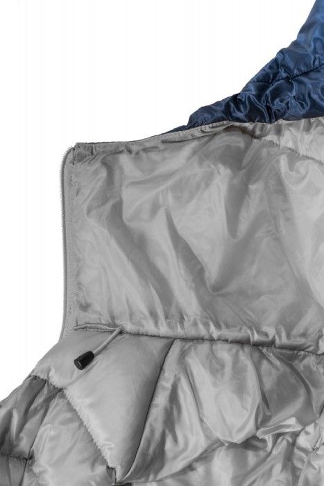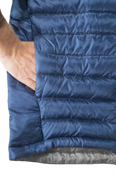 W miejscach wymagających większej swobody ruchu, oddychalności lub narażonych na większe obciążenie (ramiona, boki, kołnierz, kaptur i dolna część pleców) zastosowano syntetyczną izolację Climashield Eco 75 g/m z surowców z recyklingu. Nie wymaga ona przeszywania komór, zapewnia świetną izolację, a jednocześnie znacznie lepiej radzi sobie z wilgocią niż klasyczny puch. Pas syntetycznej izolacji poprowadzony wzdłuż boku kurtki aż do pachy i na koniec rękawa jest bezpośrednio w okolicy pachy przerwany, co zwiększa mobilność oraz poprawia oddychalność i odprowadzanie potu. Nieszyta syntetyczna izolacja w dolnej części wydłużonego panelu na plecach oraz w okolicy ramion zwiększa odporność na zużycie podczas noszenia plecaka.