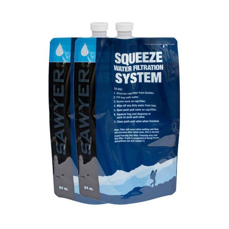 Zestaw dwóch butelek o pojemności 2 l. Każda butelka waży 45 g, a po złożeniu zajmuje minimum miejsca. Świetnie sprawdzają się do filtrowania wody przez filtry Sawyer, ponieważ podczas ściskania – w przeciwieństwie do klasycznych butelek PET – nie ulegają deformacji.