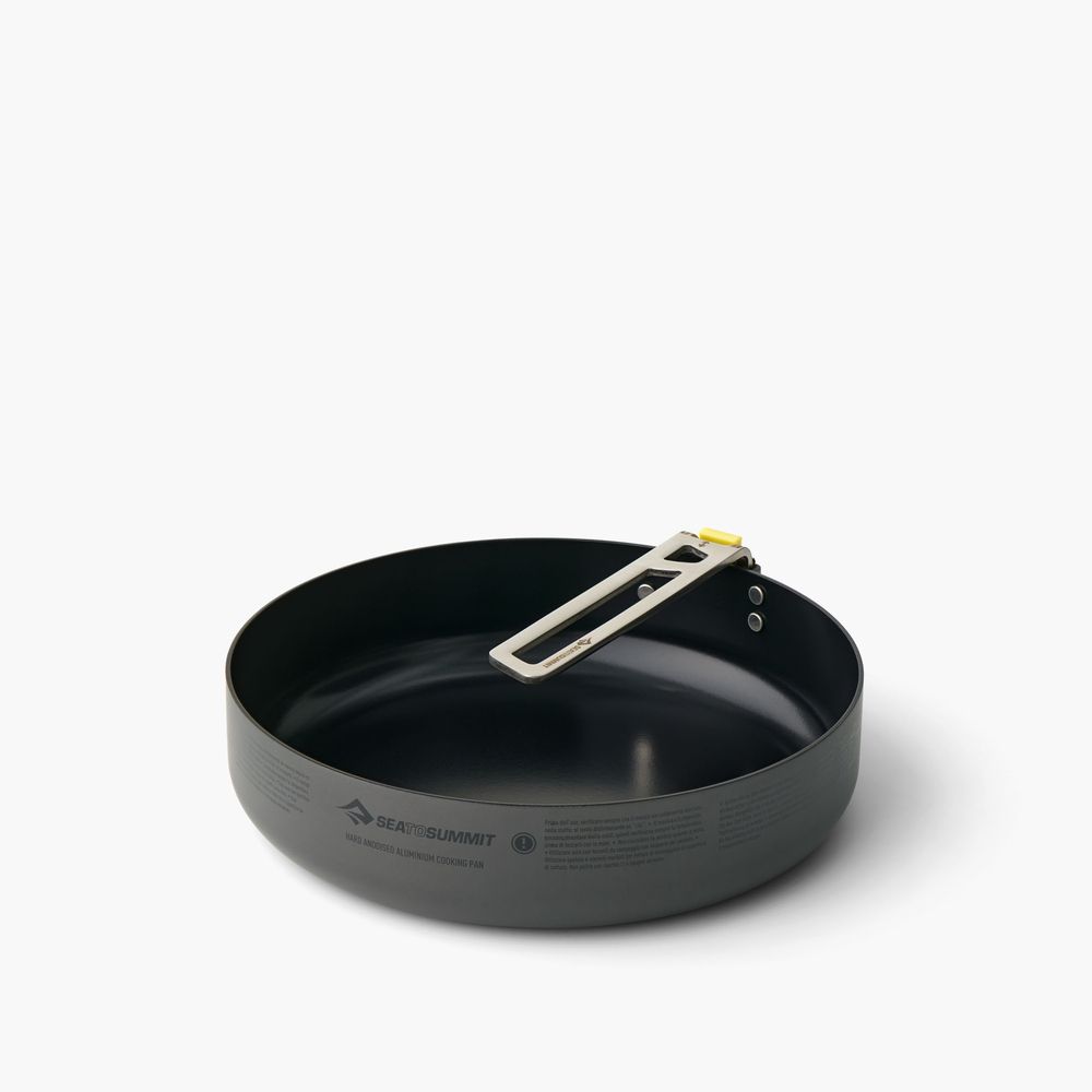Patelnia Sea To Summit Frontier UL Pan 8in z uchwytem, który można odwrócić i zdjąć, zapewnia doskonałe rozprowadzanie ciepła do równomiernego gotowania. Jest wykonana z lekkiego i trwałego eloksalowanego aluminium z nieprzywierającą powłoką. Idealna do przygotowywania naleśników czy jajecznicy w podróży i na łonie natury.
