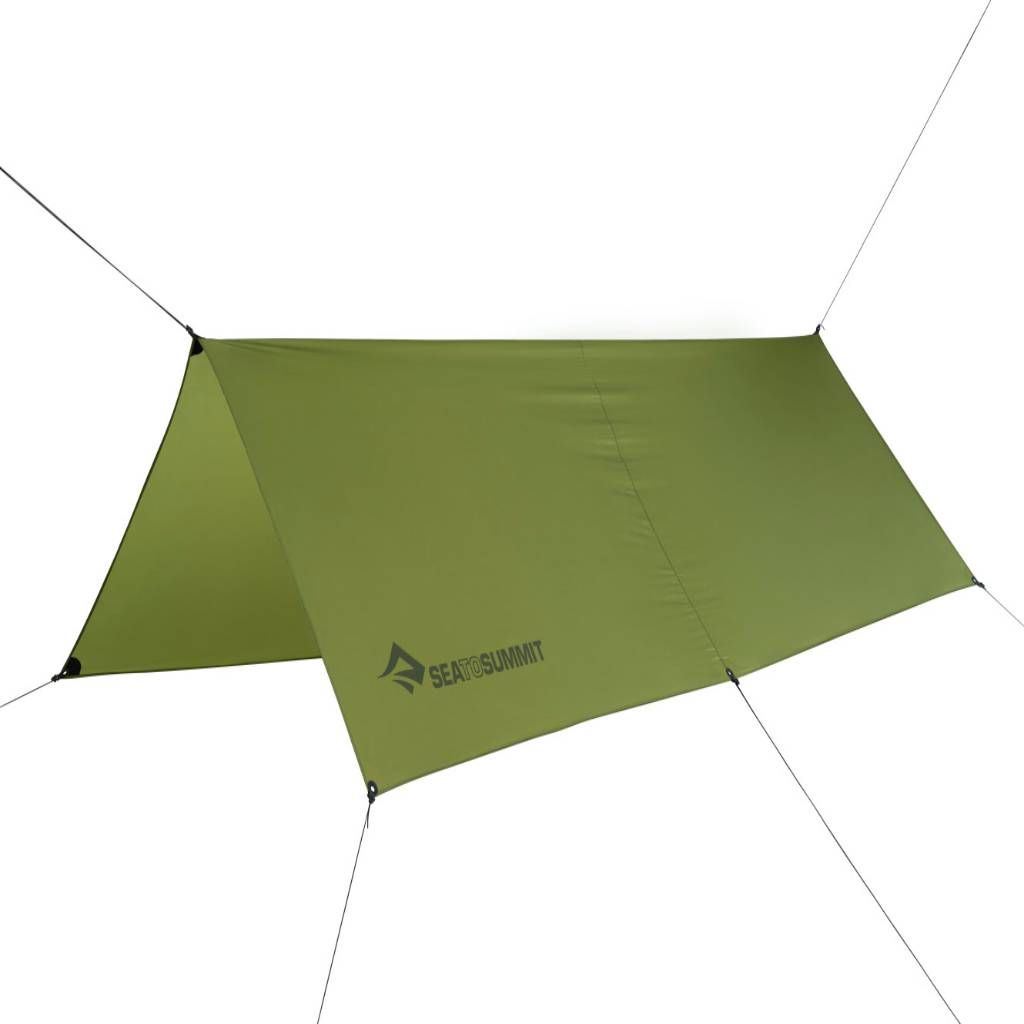 Sea To Summit Jungle Hammock Tarp to ultralekki i przestronny tarp (namiot), zaprojektowany do rozciągnięcia nad hamakiem, ale świetnie sprawdzi się także do klasycznego spania na ziemi. Tarp ma już przymocowane linki napinające z systemem Lineloc i ma 8 wzmocnionych oczek z otworami do budowy na kijek trekkingowy.