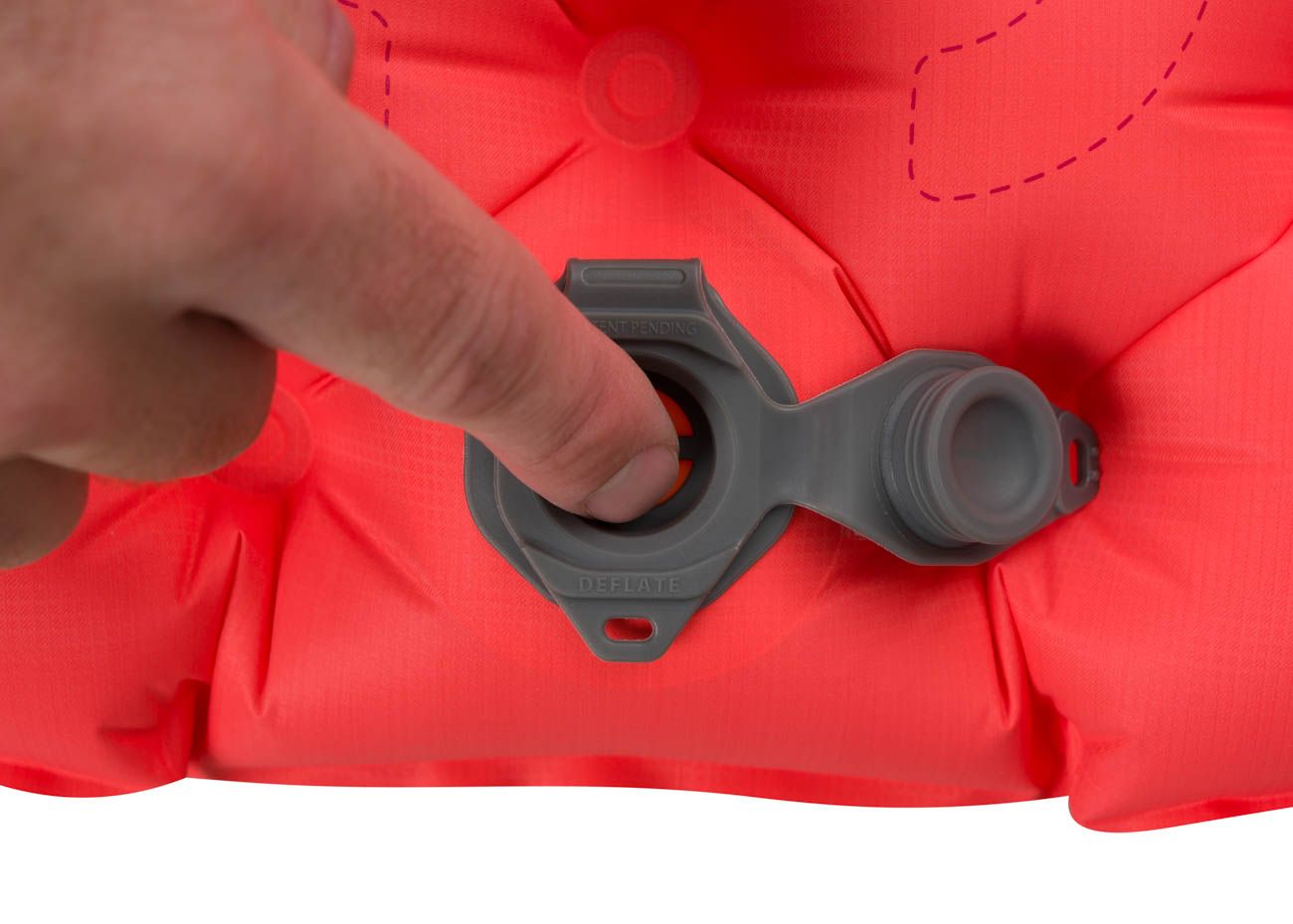 Otwierając pierwszą sekcję, możesz nadmuchać karimatę, a powietrze nie uchodzi. Naciskając na pomarańczowy punkt pośrodku, wypuszczasz powietrze.