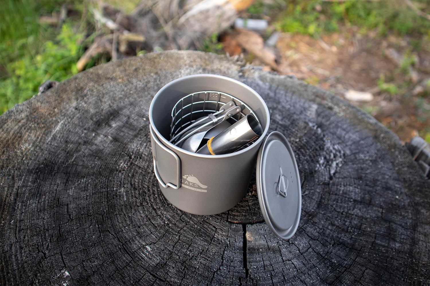Lekki i świetnie pakowany tytanowy zestaw do gotowania z kuchenką alkoholową. Całkowita waga zestawu to piękne 155 gramów! Zestaw jest wyposażony w tytanowym garnkiem o pojemności 650 ml, składana, ząbkowana łyżka tytanowa, kuchenką alkoholową, stojak dla garnka i osłony wiatrowej.