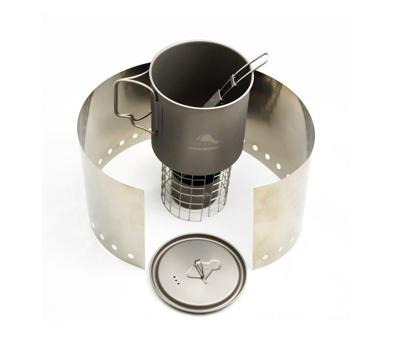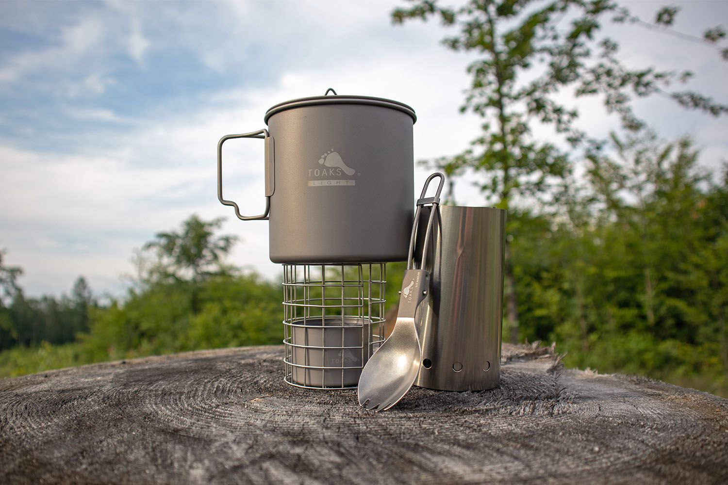 Garnek o pojemności 650 ml ma wewnątrz miarowe kreski. Kuchenka alkoholowa TOAKS ma podwójną ścianę, w której zachodzi podgrzewanie i gazowanie paliwa. Płomień wydobywa się zarówno z centrum, jak i z małych otworów na obwodzie. Jako paliwo do kuchenki alkoholowej polecamy tylko wysokiej jakości alkohol (biobenzynę) z wysoką zawartością etanolu 90 % i więcej, który pali się naturalnym płomieniem bez zapachu i sadzy.