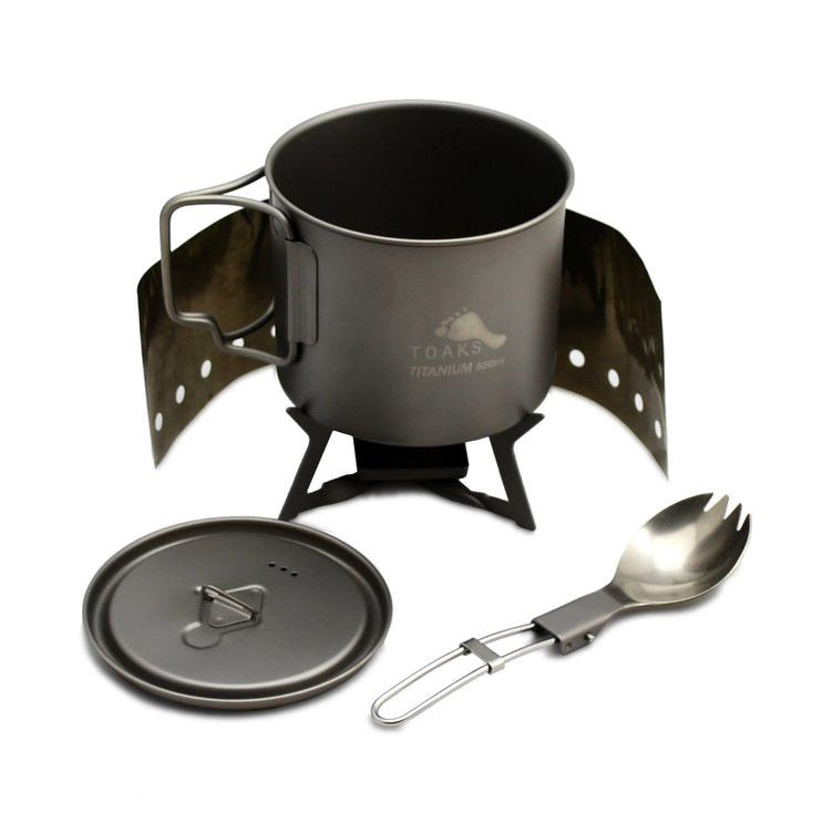 Ultralekki zestaw tytanowy z kuchenką na stały alkohol zawiera wszystko, co potrzebujesz, aby przygotować jedzenie i dostarczyć je do żołądka. Całkowita waga zestawu to niesamowite 113 g. Ten zestaw jest idealny do podgrzewania wody dla dehydratowane jedzenie, kawę lub herbatę.