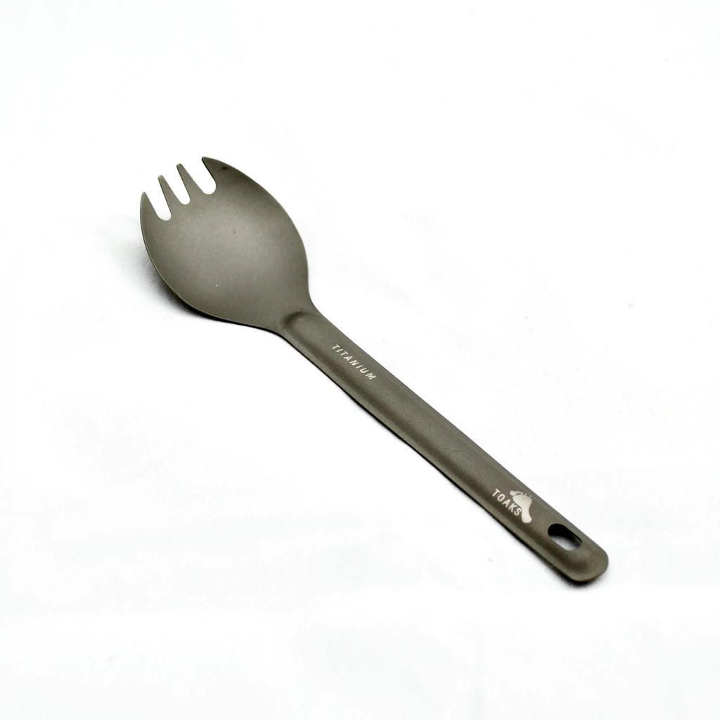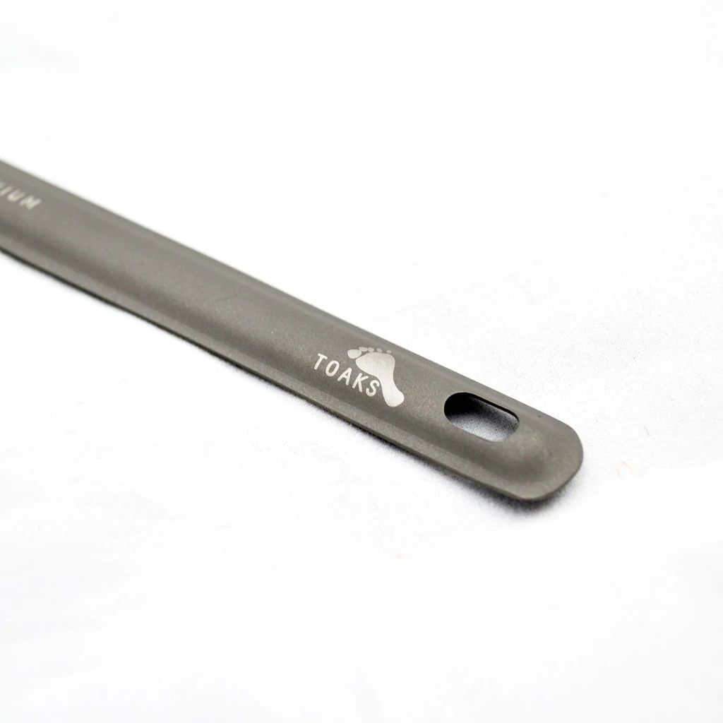 Ultralekka, ale wytrzymała ząbkowana łyżka z tytanu. Łyżka ma matowe wykończenie. Tytan zapewnia jej minimalną wagę, wysoką wytrzymałość, odporność na korozję oraz pełne bezpieczeństwo dla zdrowia. Waga łyżki to zaledwie 12,5 g.