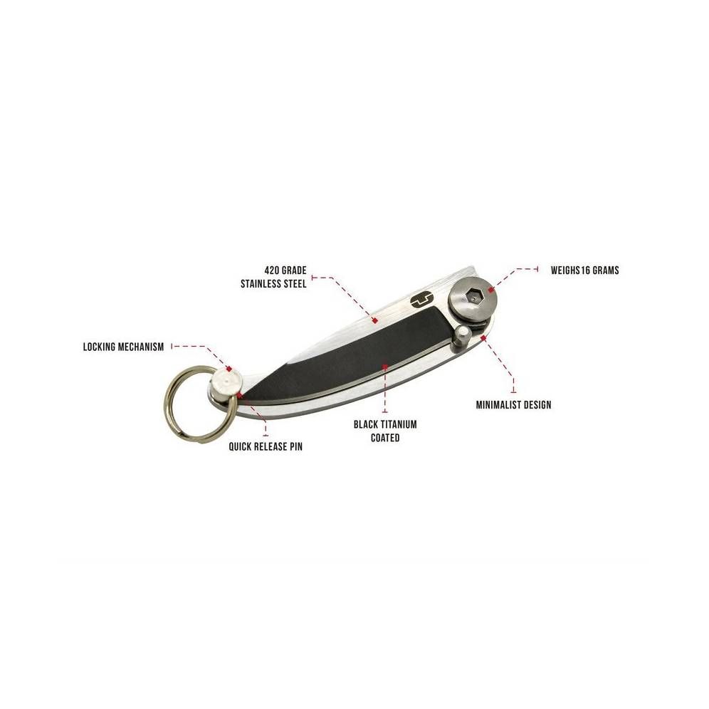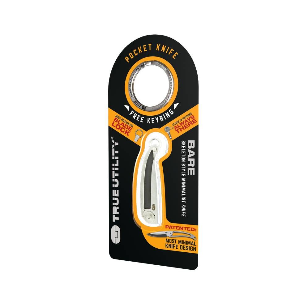 Oryginalny brytyjski nóż TRUE Bare jest przeznaczony dla tych, którzy chcą nosić w kieszeniach naprawdę minimalną ilość. Dzięki minimalnym wymiarom noża po złożeniu 55 mm i 20 gramom, możesz go mieć naprawdę wszędzie. Przy pomocy pinu możesz zabezpieczyć nóż i powiesić go niemal na wszystkim.
