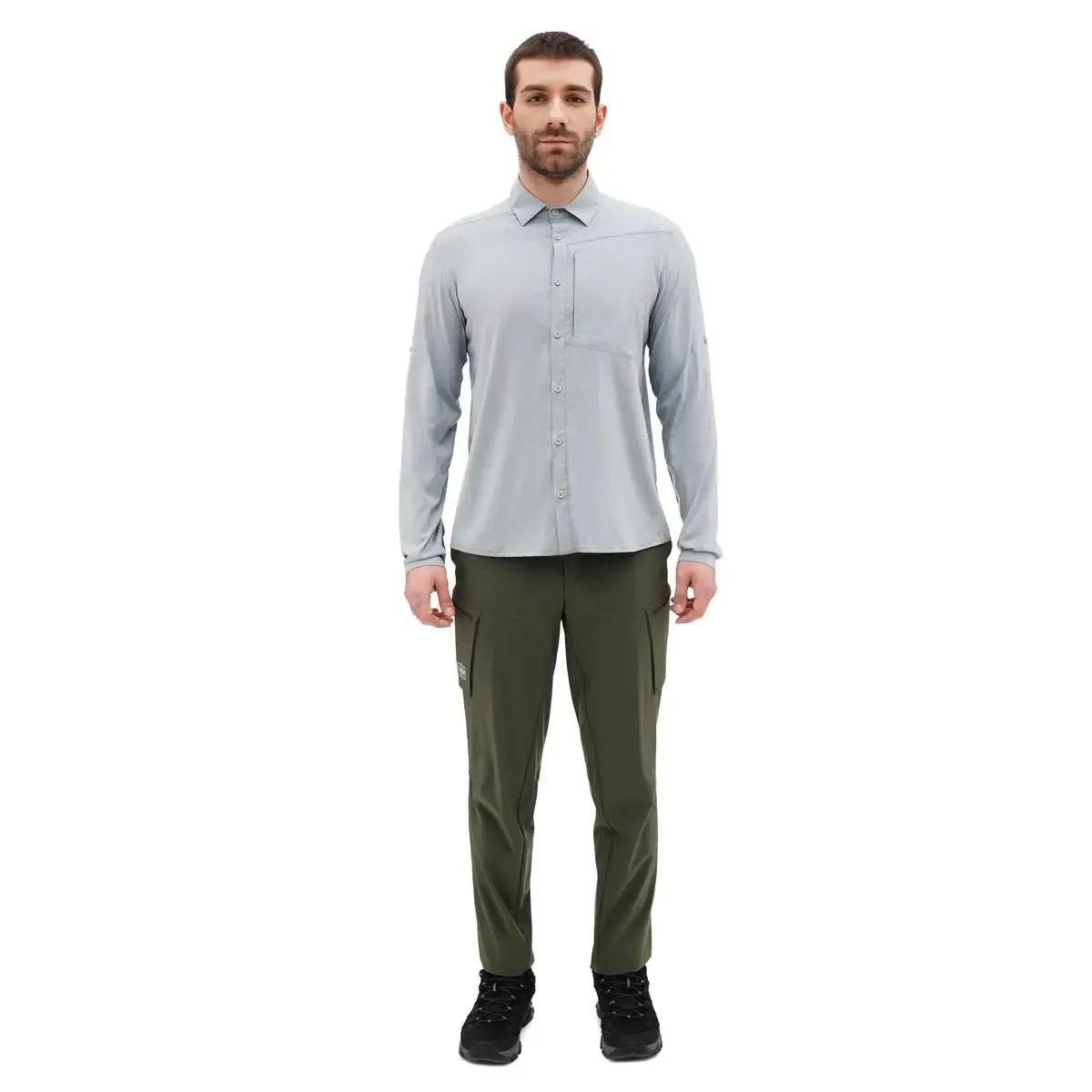 materiał – nylon + poliester + elastan, gramatura 96 g/m², ochrona przed promieniowaniem UV UPF 50+, luźny i wygodny krój, w pełni rozpinana na guziki, możliwość rozpięcia mankietów (2 guziki), możliwość podpięcia podwiniętych rękawów, kieszeń piersiowa na drobiazgi, szybkoschnąca, dobry odprowadzanie potu