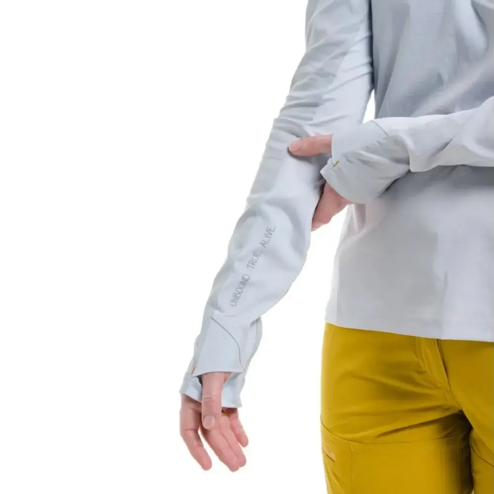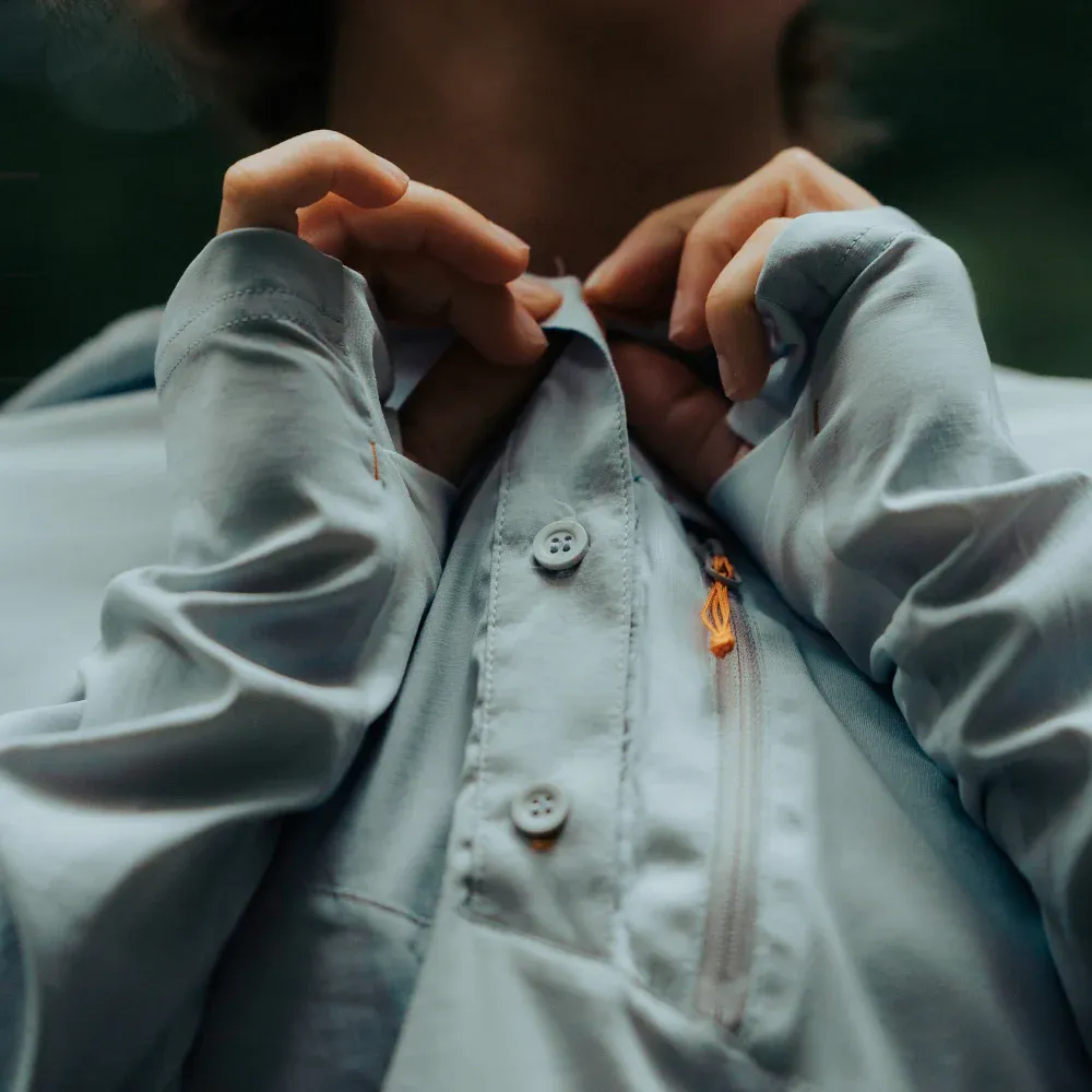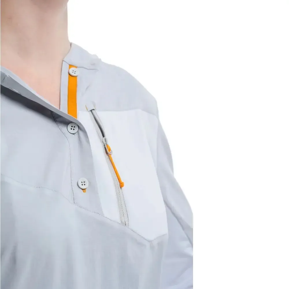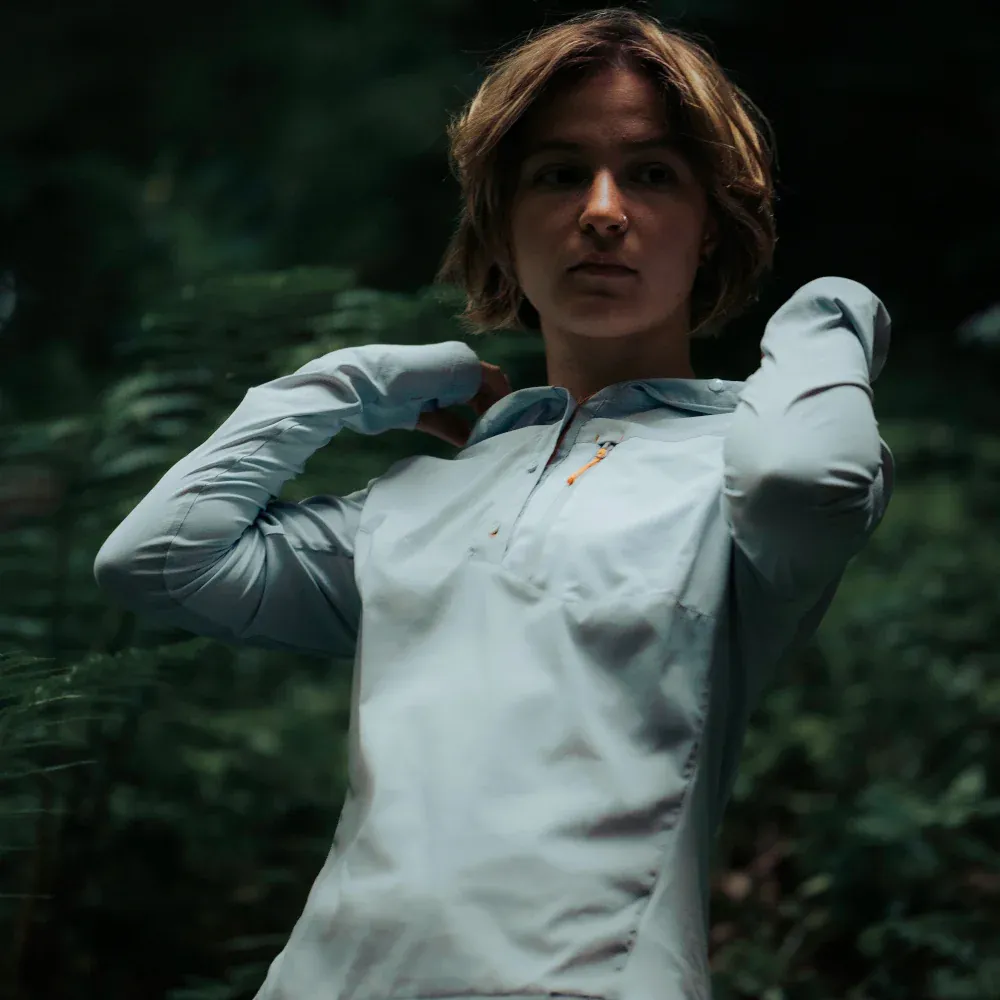 Koszula została zaprojektowana z myślą o noszeniu plecaka – bez zbędnych elementów w okolicy lędźwi, z szybkoschnącą strukturą i wysoką odpornością na mechaniczne zużycie oraz promieniowanie słoneczne (UPF50+).