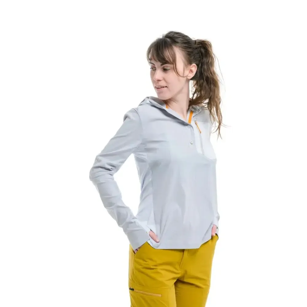 Turbat Maya Hood Trek Wmn to damska warstwa bazowa, która łączy lekkość koszuli trekkingowej z funkcjonalnością cienkiej bluzki z długim rękawem i kapturem (tzw. sun hoodie). Dzięki kapturowi, elastycznemu, szybkoschnącemu materiałowi oraz certyfikowanej ochronie UV UPF50+ jest idealna na letnie długodystansowe trekkingi i podróże z plecakiem. Świetnie odprowadza pot i nie ogranicza ruchów nawet podczas najbardziej wymagających wypraw.